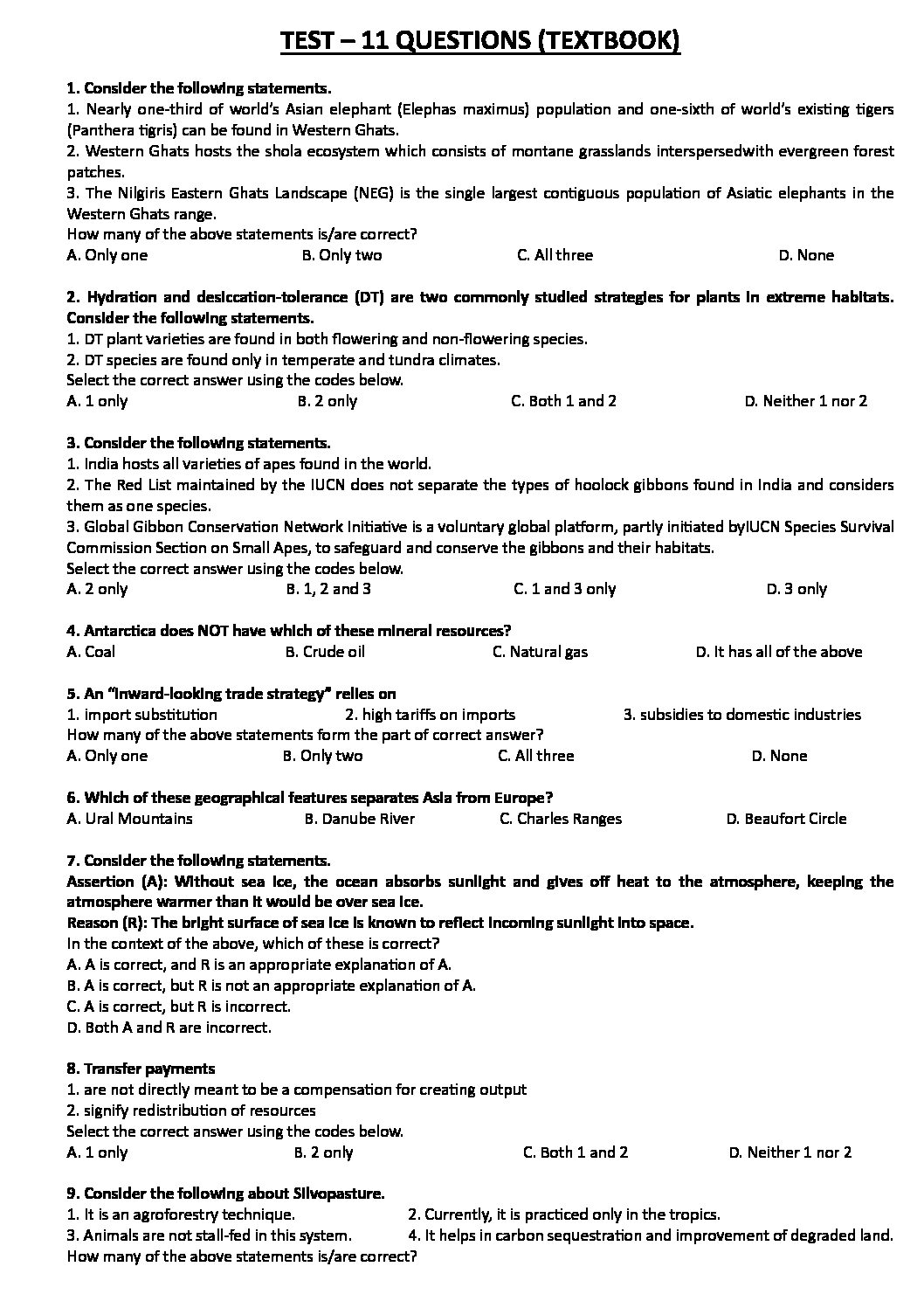 / INSIGHTS ONINDIA 2024 TEXTBOOKWISE PT TEST-11 (NCERT CLASS XI & XII) ENGLISH MEDIUM 2024 (BLACK & WHITE)