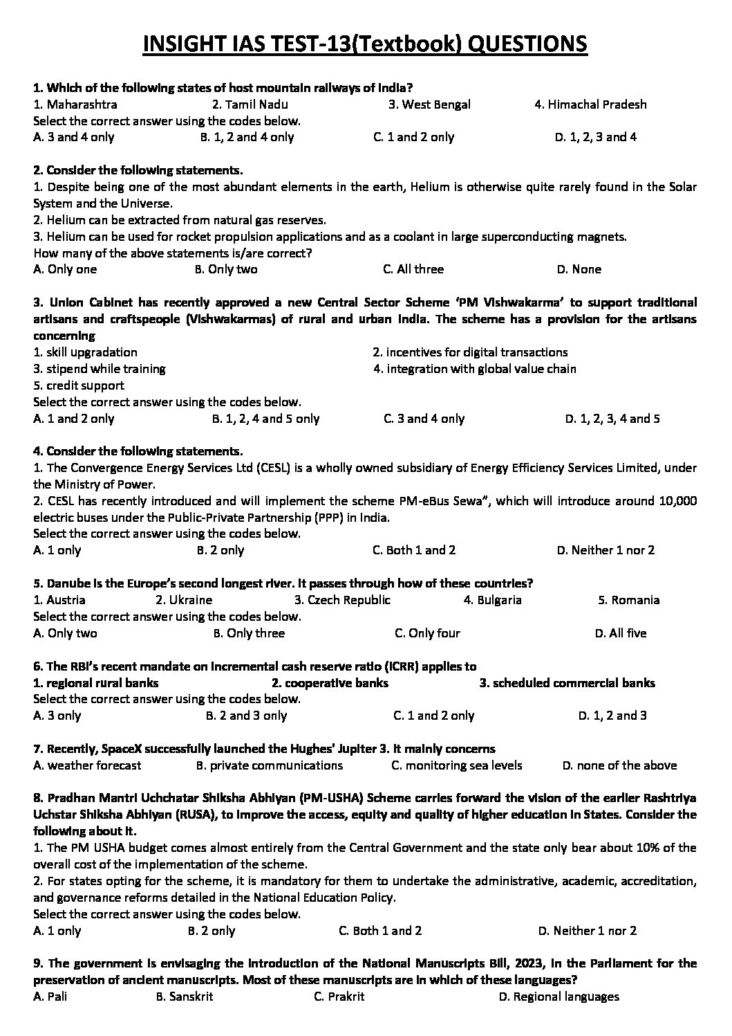 INSIGHTS ONINDIA 2024 TEXTBOOKWISE PT TEST-13 (STANDARD SOURCES + INTERNATIONAL-2 THEMATIC) ENGLISH MEDIUM 2024 (BLACK & WHITE)