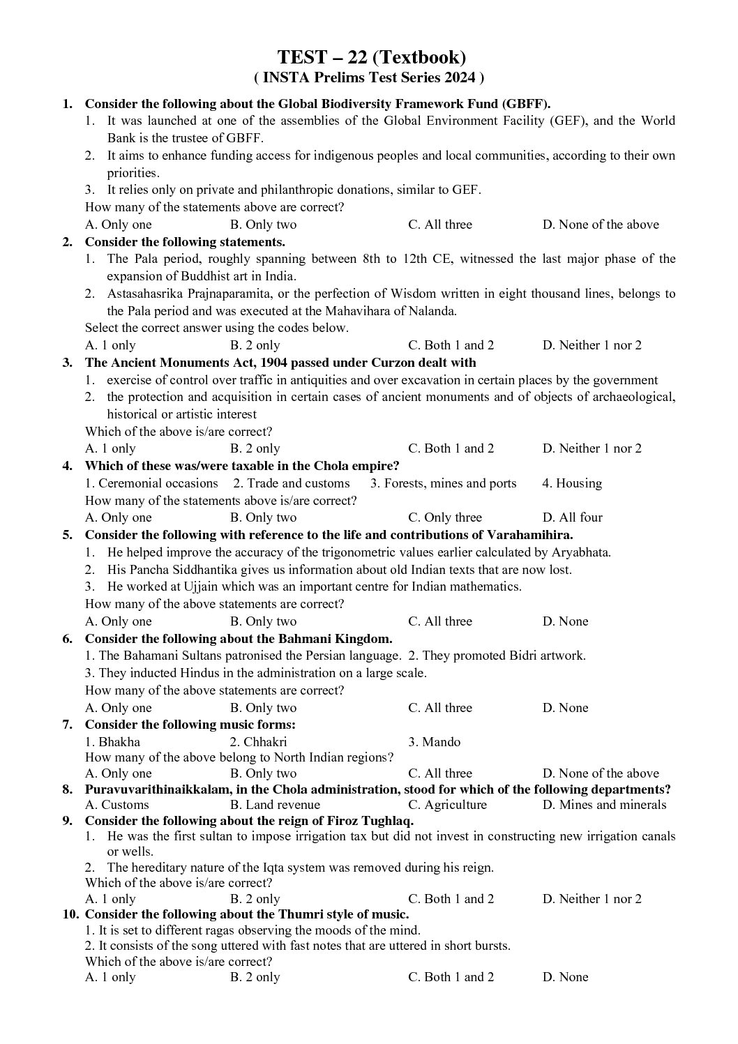 INSIGHTS ONINDIA 2024 TEXTBOOKWISE PT TEST 22 FINAL ENGLISH {BLACK AND WHITE}