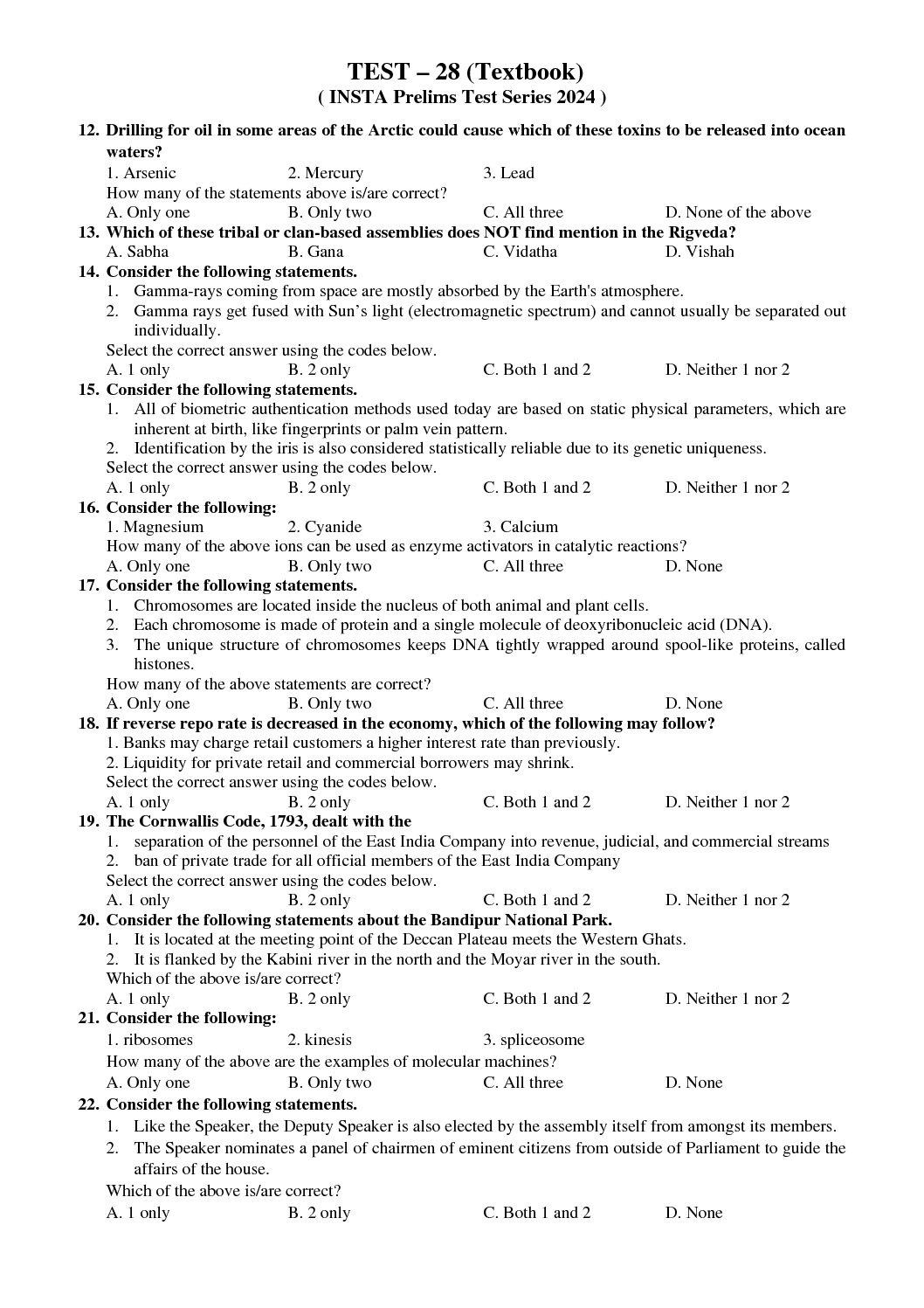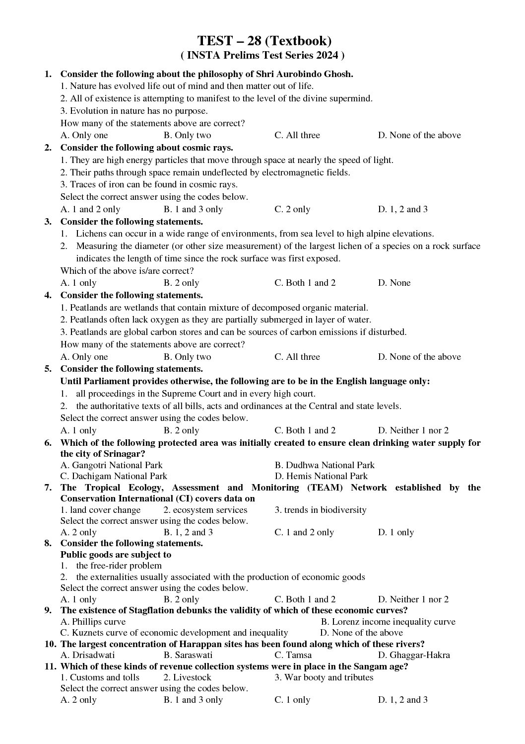 INSIGHTS ONINDIA 2024 TEXTBOOKWISE PT TEST 28 FINAL {ENGLISH} {BLACK AND WHITE}