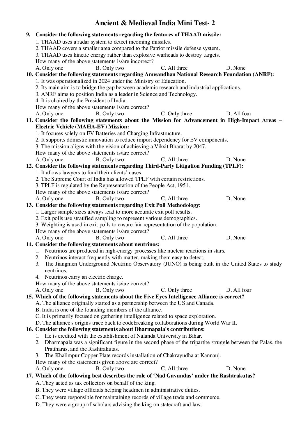 / INSIGHTS ONINDIA 2025 PT TEST-27 (ANCIENT & MEDIVAL HISTORY MINI TEST-02) FINAL (ENGLISH) {BLACK AND WHITE}