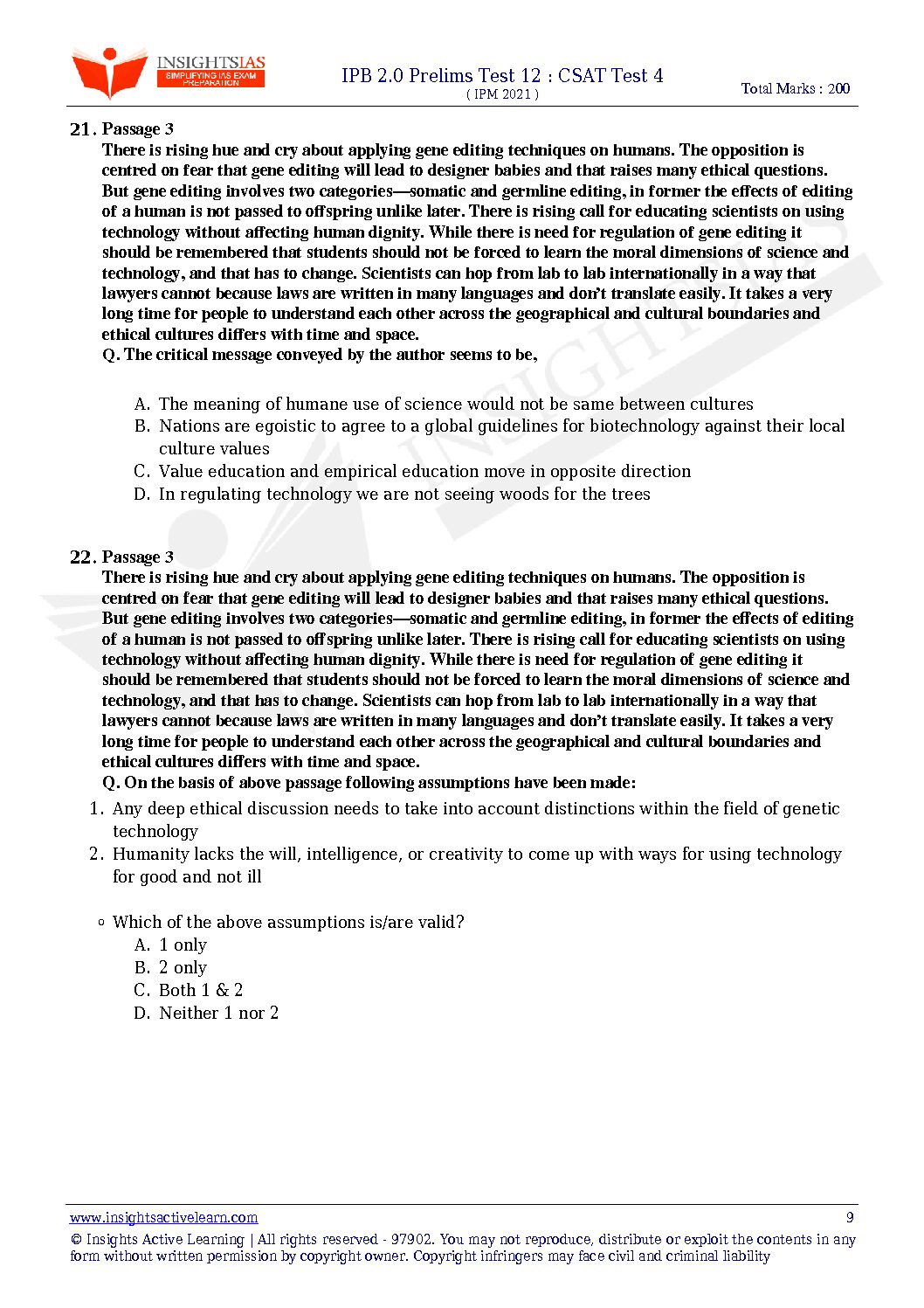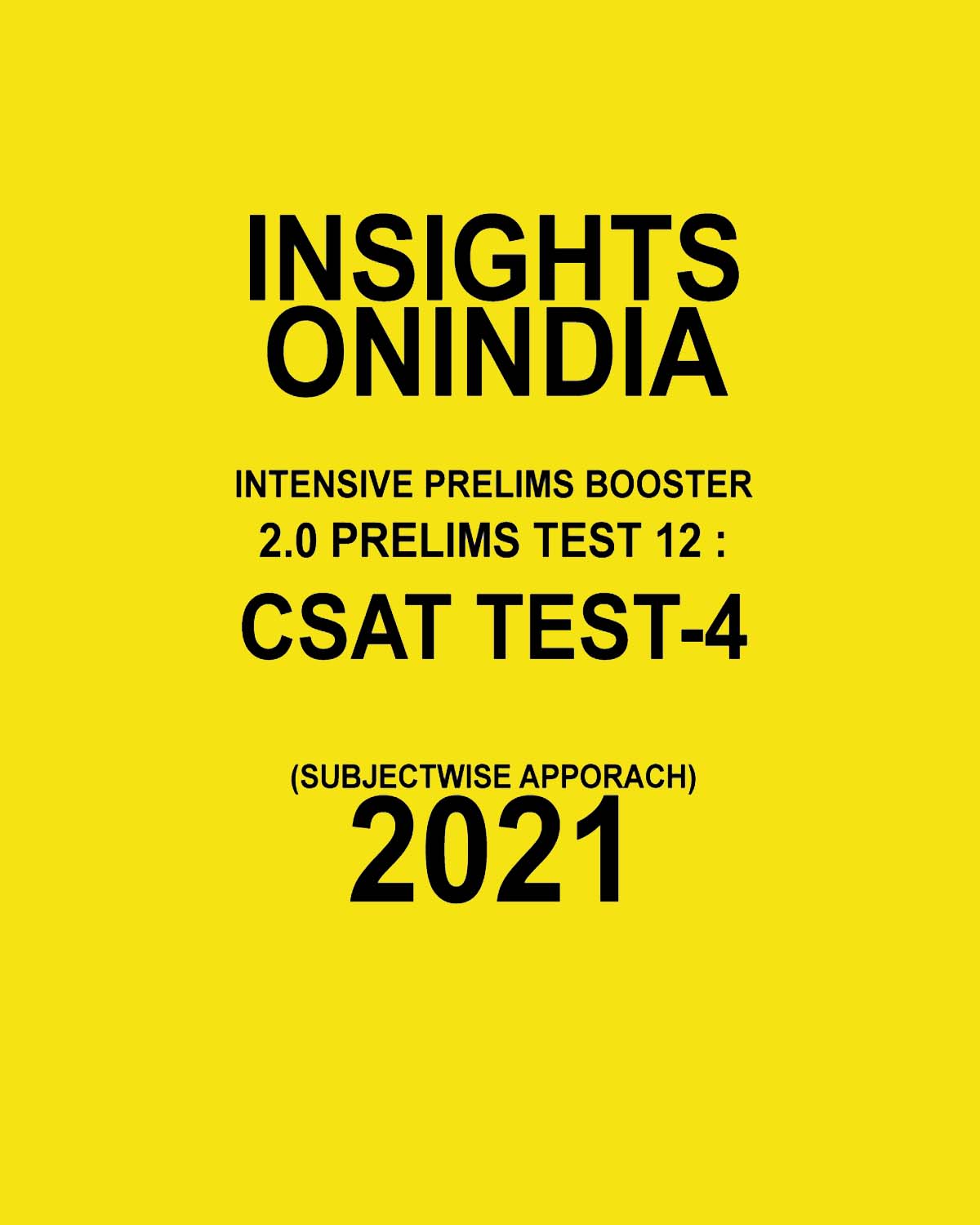 / INSIGHTS ONINDIA INTENSIVE PRELIMS BOOSTER 2.0 PRELIMS TEST 12 CSAT TEST -4 ( SUBJECTWISE APPROACH) 2021