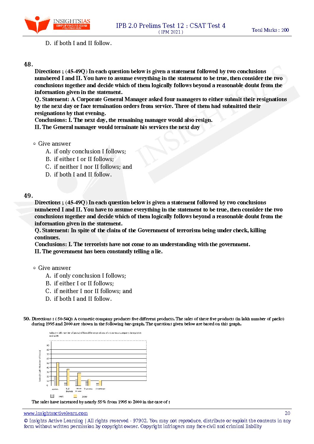 INSIGHTS ONINDIA INTENSIVE PRELIMS BOOSTER 2.0 PRELIMS TEST 12 CSAT TEST -4 ( SUBJECTWISE APPROACH) 2021