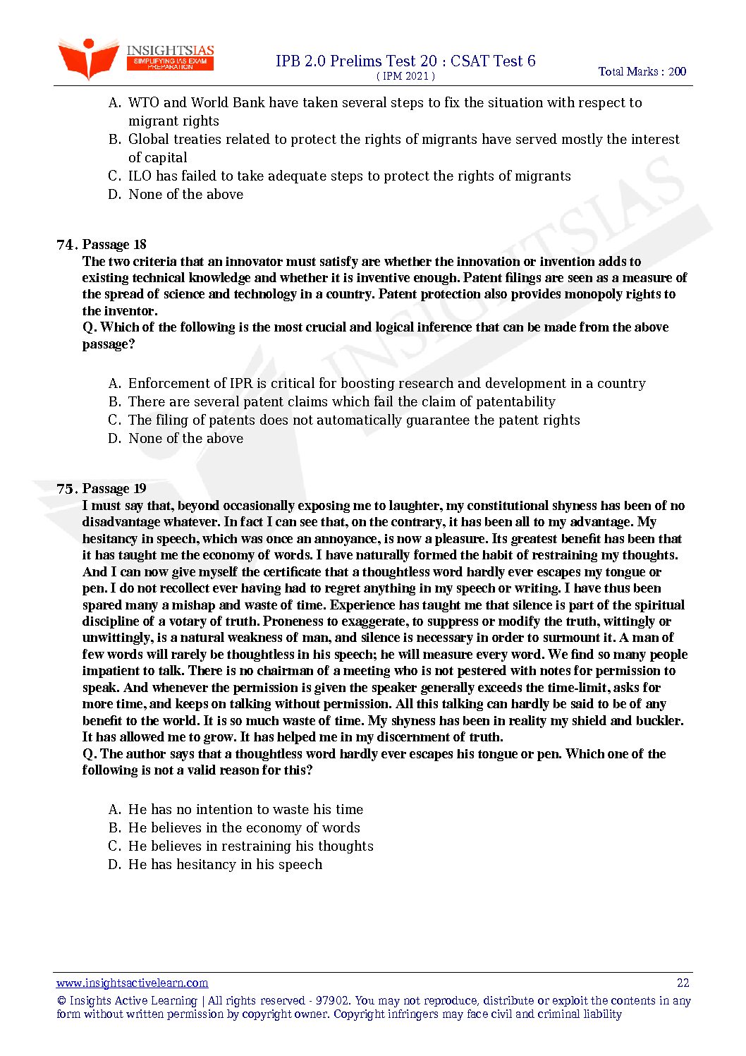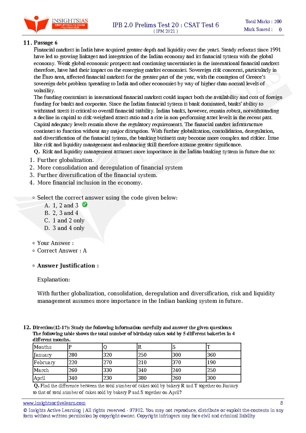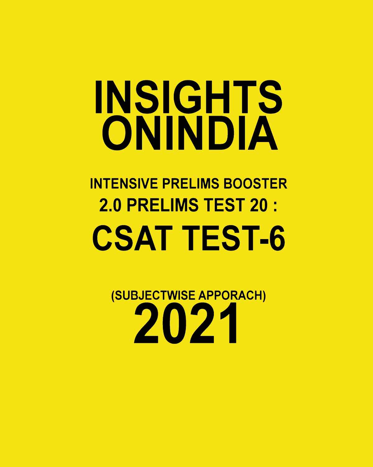 / INSIGHTS ONINDIA INTENSIVE PRELIMS BOOSTER 2.0 PRELIMS TEST-20 :CSAT TEST-6 ( SUBJECTWISE APPROACH) 2021