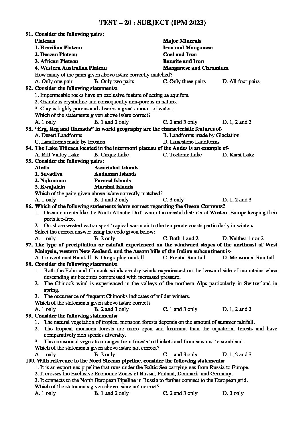 INSIGHTS ONINDIA PT 2023 SUBJECTWISE TEST-20- WITH SOLUTION (GEOGRAPHY ) (SUBJECTWISE APPROACH) (BLACK & WHITE)