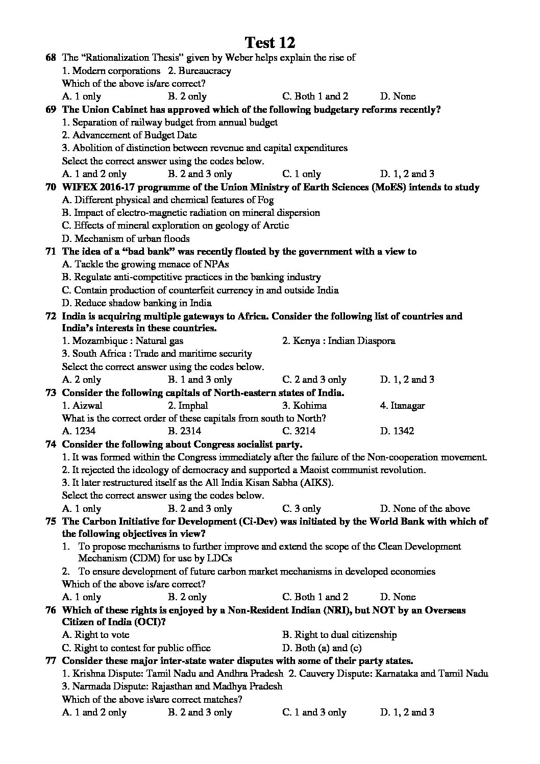INSIGHTS ONINDIA PT TEST-12 WITH SOLUTIONS 2017