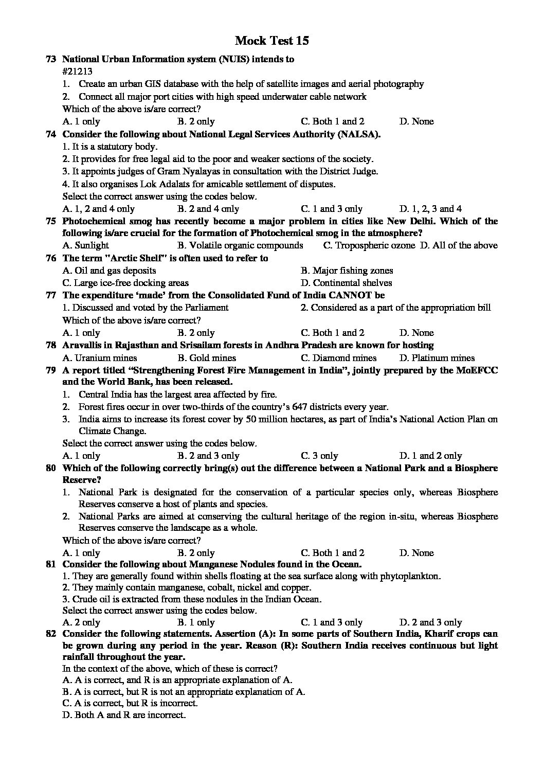 / INSIGHTS ONINDIA PT TEST-15 ( POLITY , GEOGRAPHY AND CURRENT AFFAIRS ) 2019