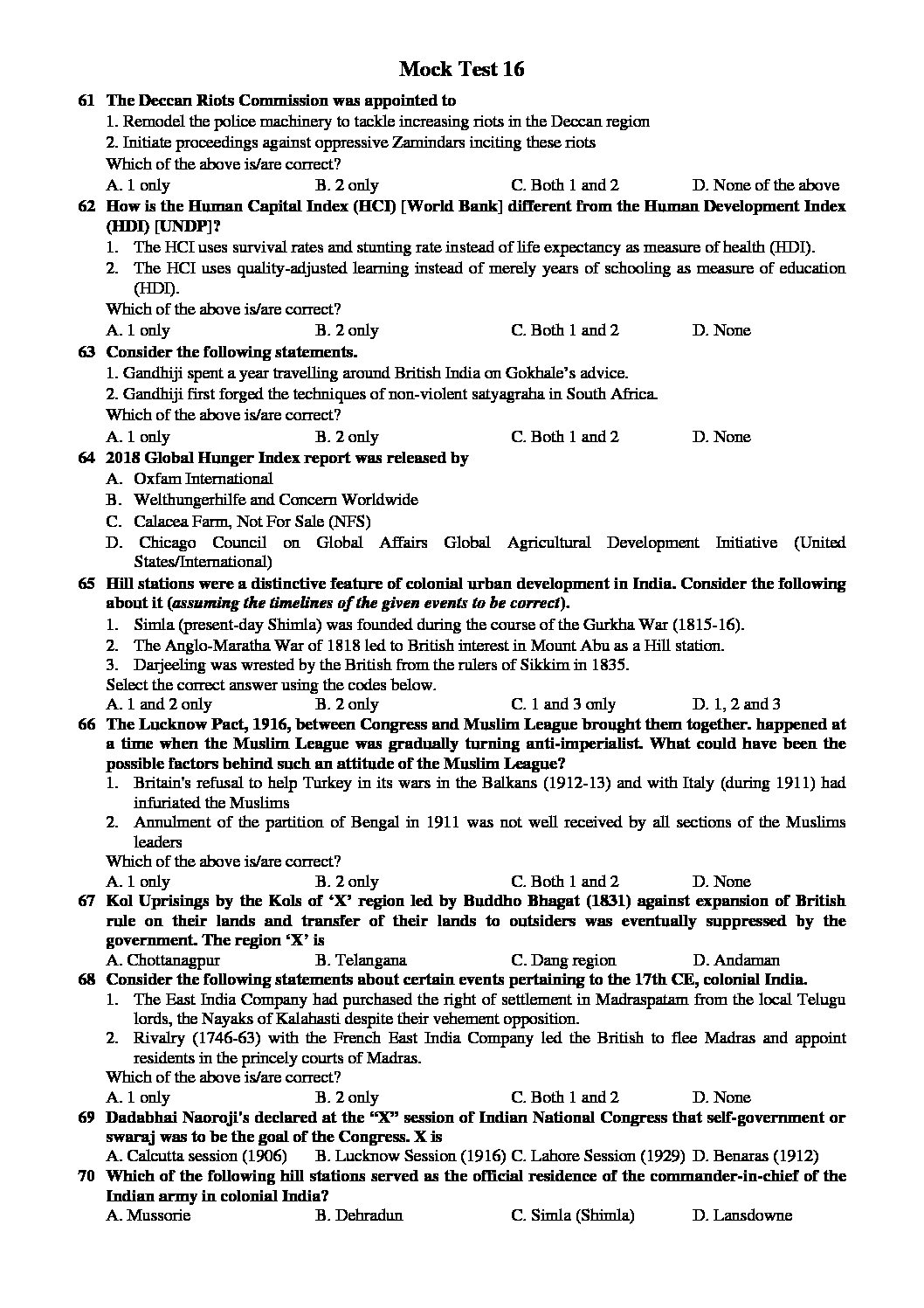 / INSIGHTS ONINDIA PT TEST-16 ( HISTORY, AND ECONOMICS) 2019