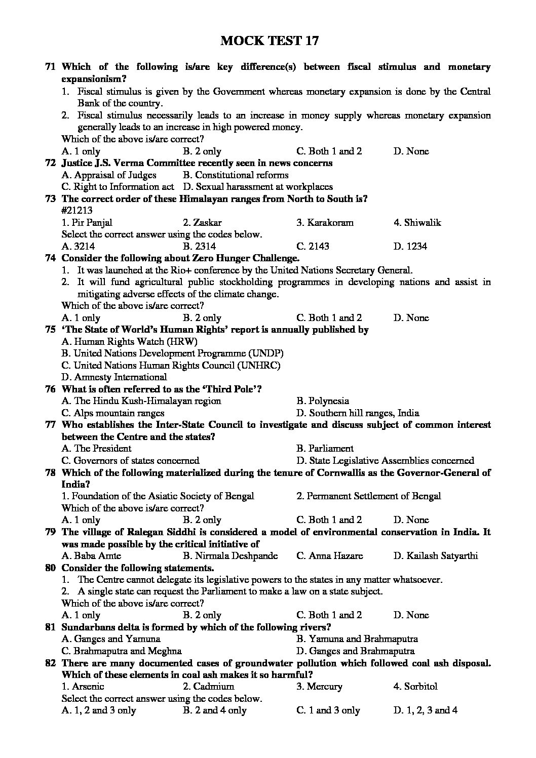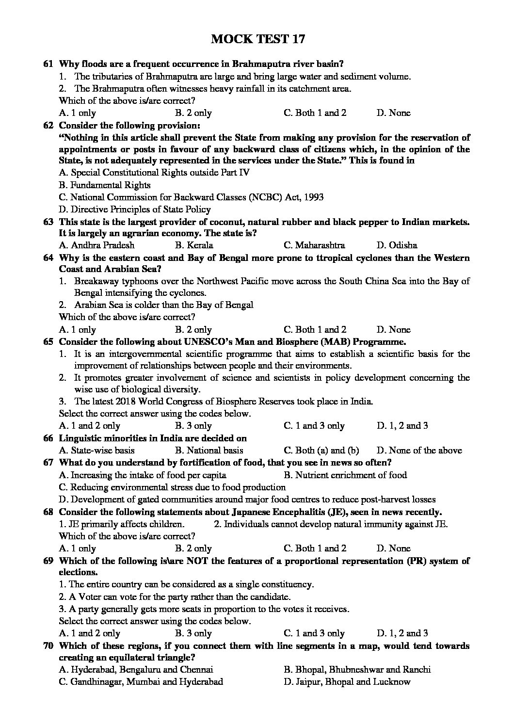/ INSIGHTS ONINDIA PT TEST-17 ( POLITY GEOGRAPHY AND CURRENT AFFAIRS ) 2019