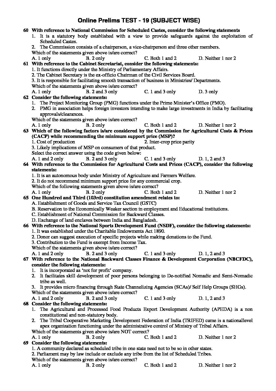 / INSIGHTS ONINDIA PT TEST -19 (POLITY & CURRENT AFFAIRS) SUBJECTWISE APPROACH 2020