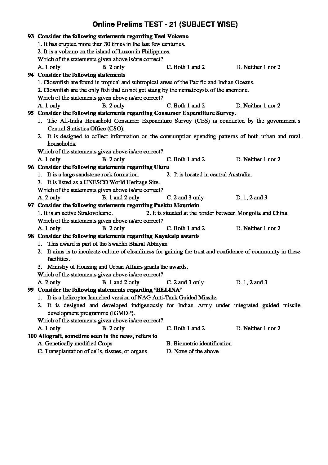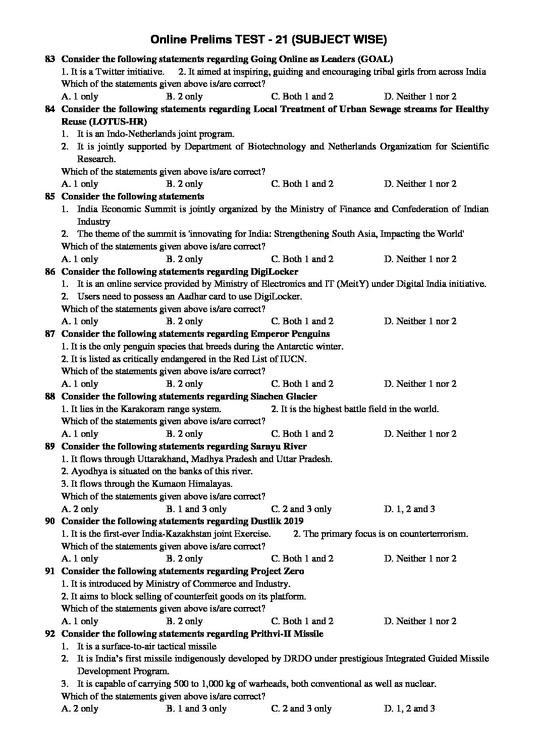 / INSIGHTS ONINDIA PT TEST -21 ( ENVIRONMENT & CURRENT AFFAIRS) SUBJECTWISE APPROACH 2020