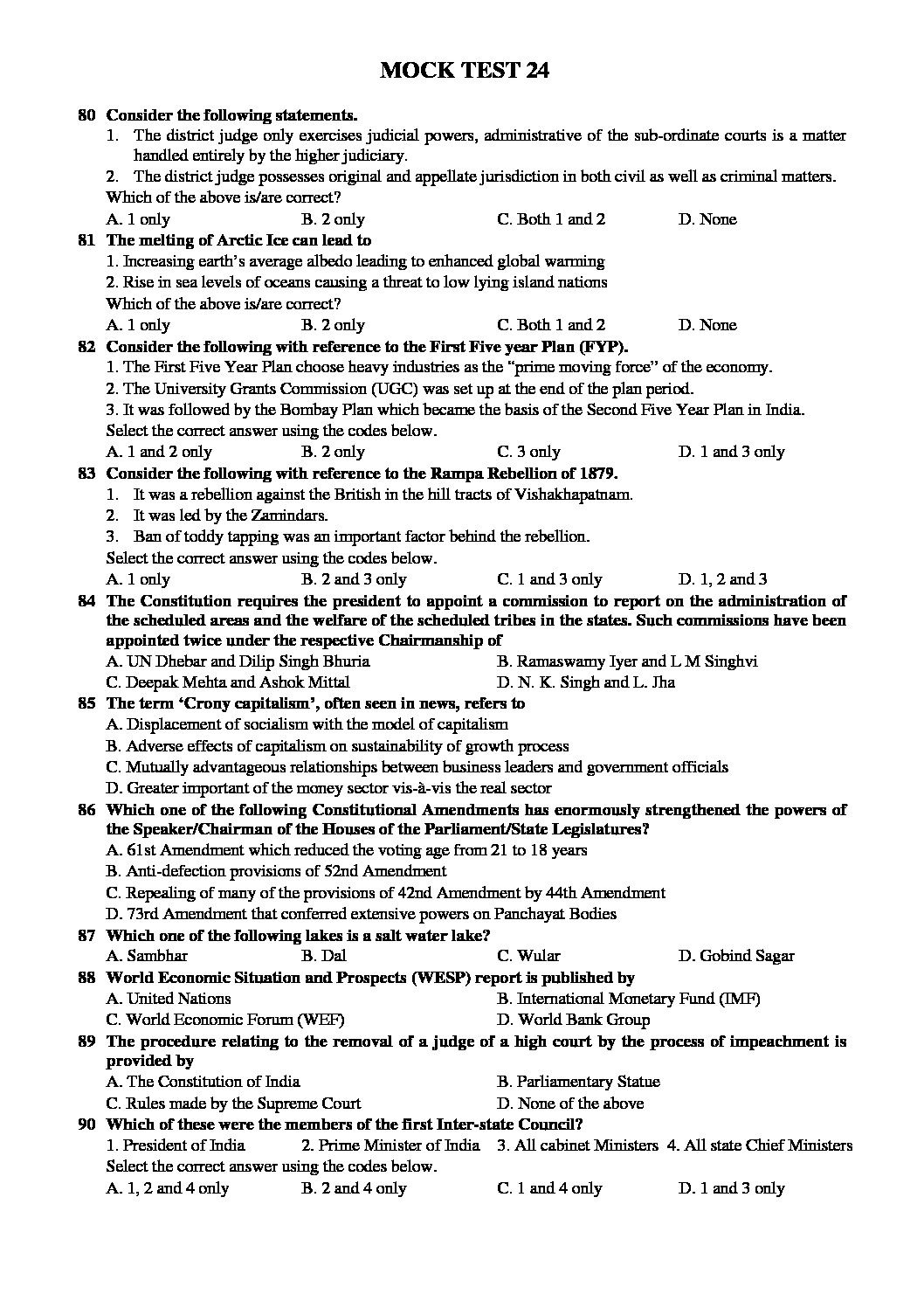 / INSIGHTS ONINDIA PT TEST-24 ( ECONOMICS , POLITY AND CURRENT AFFAIRS) 2019
