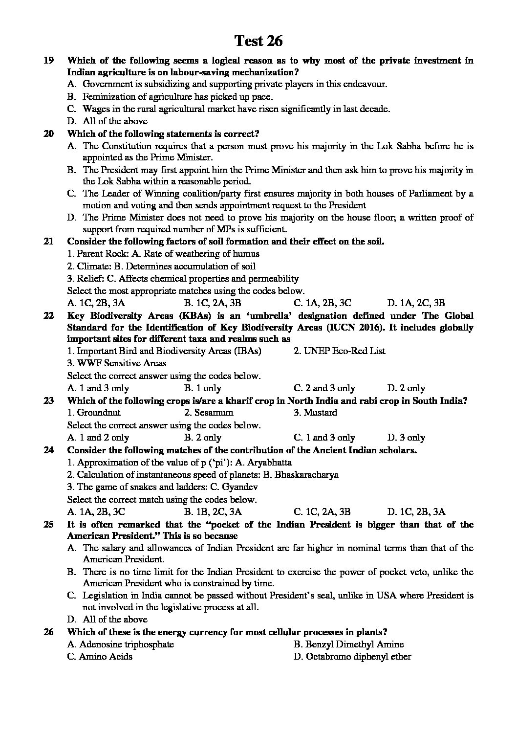 INSIGHTS ONINDIA PT TEST-26 WITH SOLUTIONS 2017