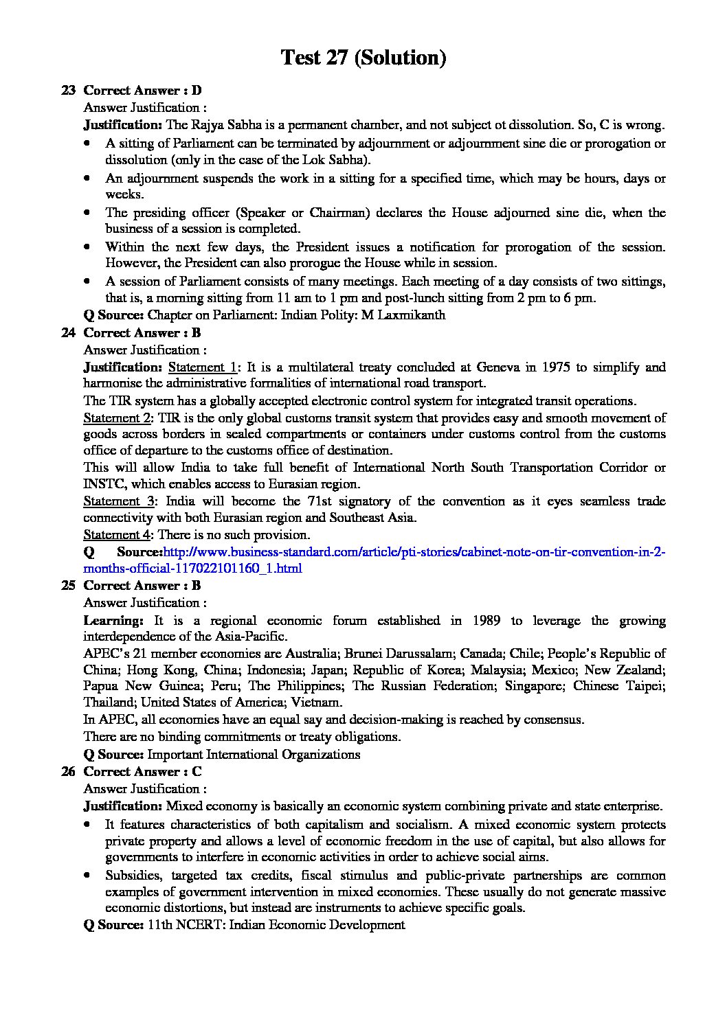 INSIGHTS ONINDIA PT TEST-27 WITH SOLUTIONS 2017