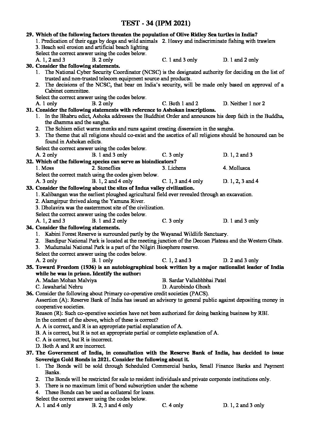 INSIGHTS ONINDIA PT TEST-34 WITH SOLUTIONS COMPLETE SYLLABUS -SUBJECTWISE APPROACH 2021