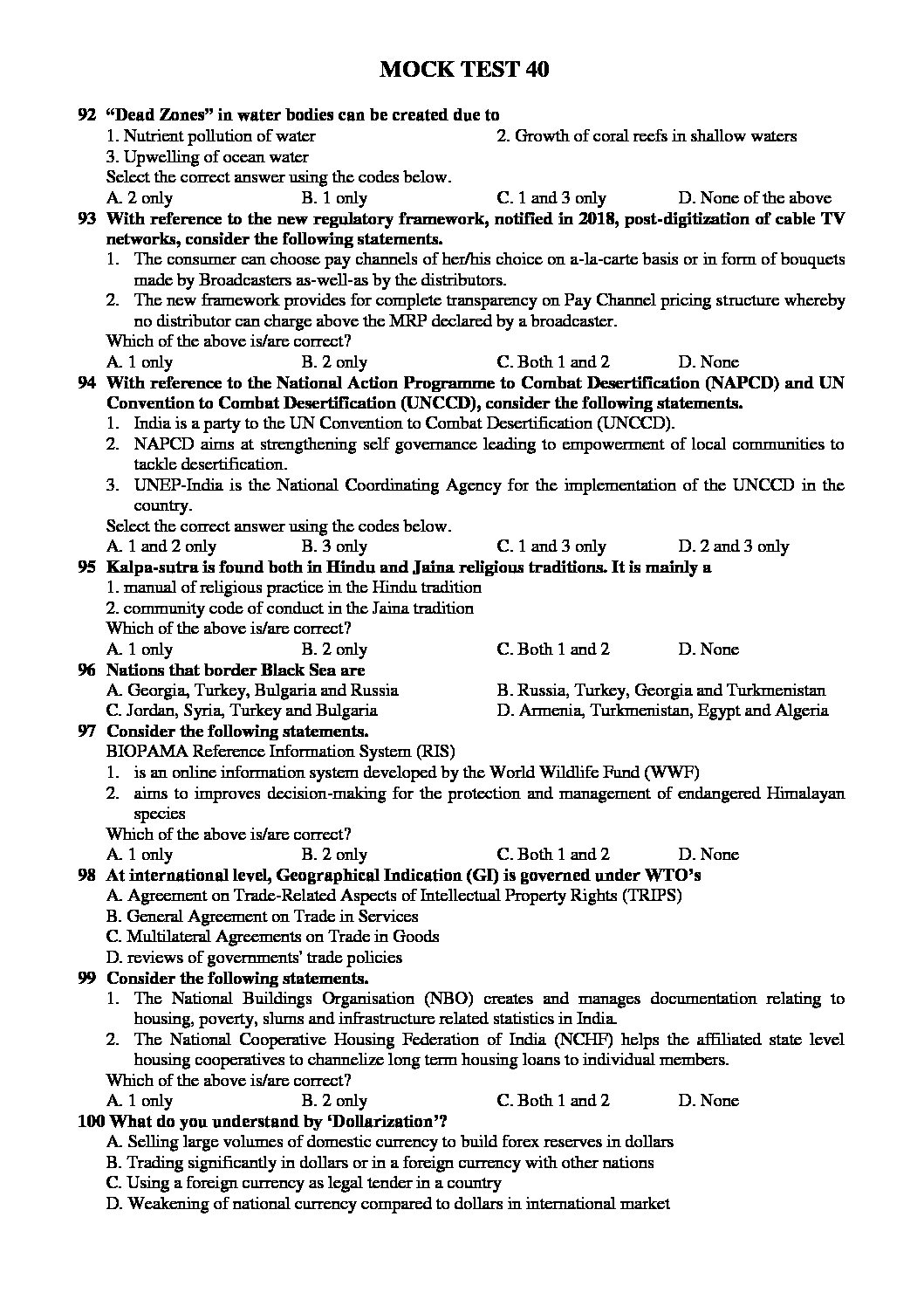 / INSIGHTS ONINDIA PT TEST-40 ( PRELIMS COMPREHENSIVE REVISION TEST-3) 2019