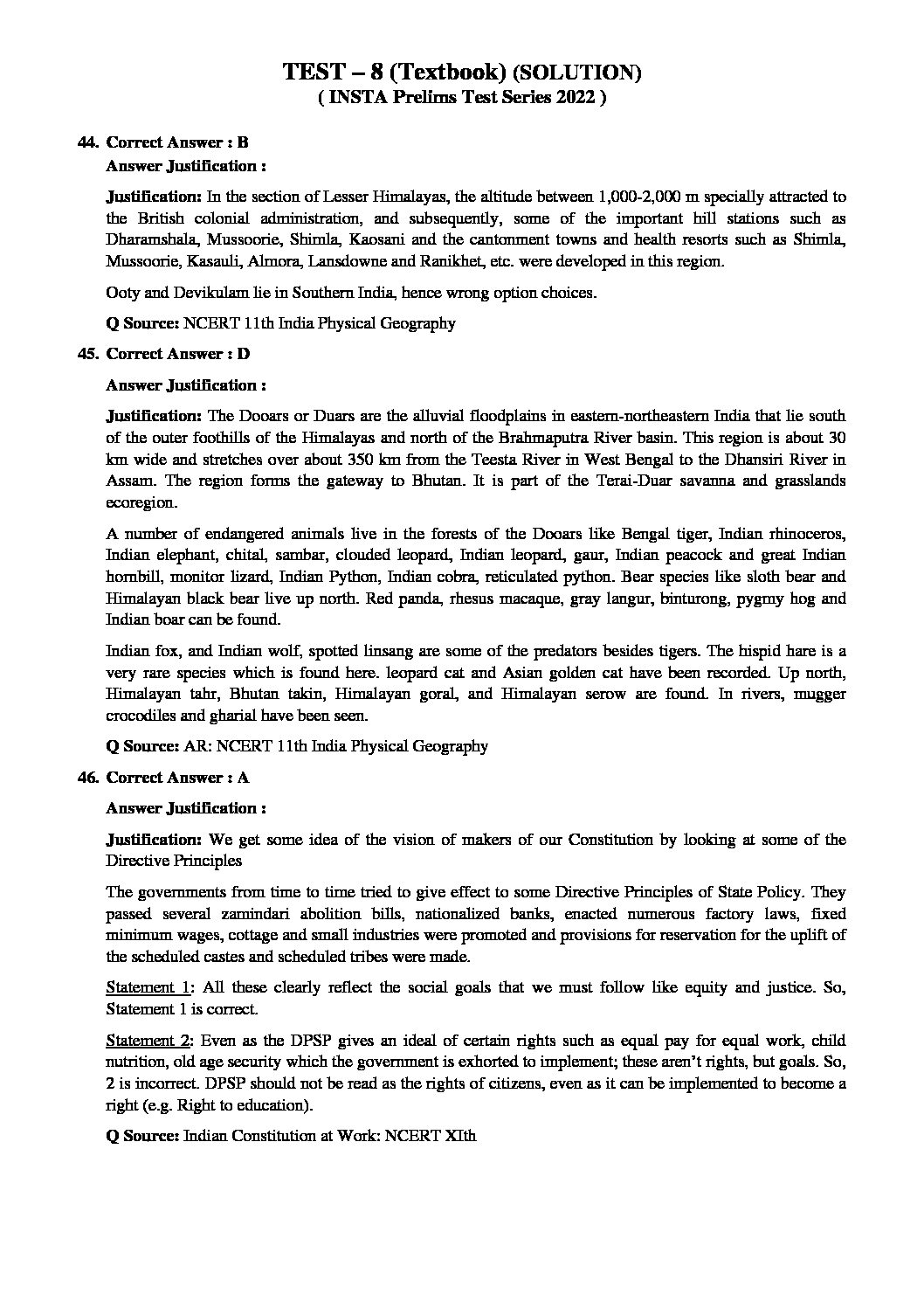INSIGHTS ONINDIA PT TEST-8 WITH SOLUTION – NCERT CLASS – XI TEXT BOOKWISE APPROACH (2022) (BLACK & WHITE)