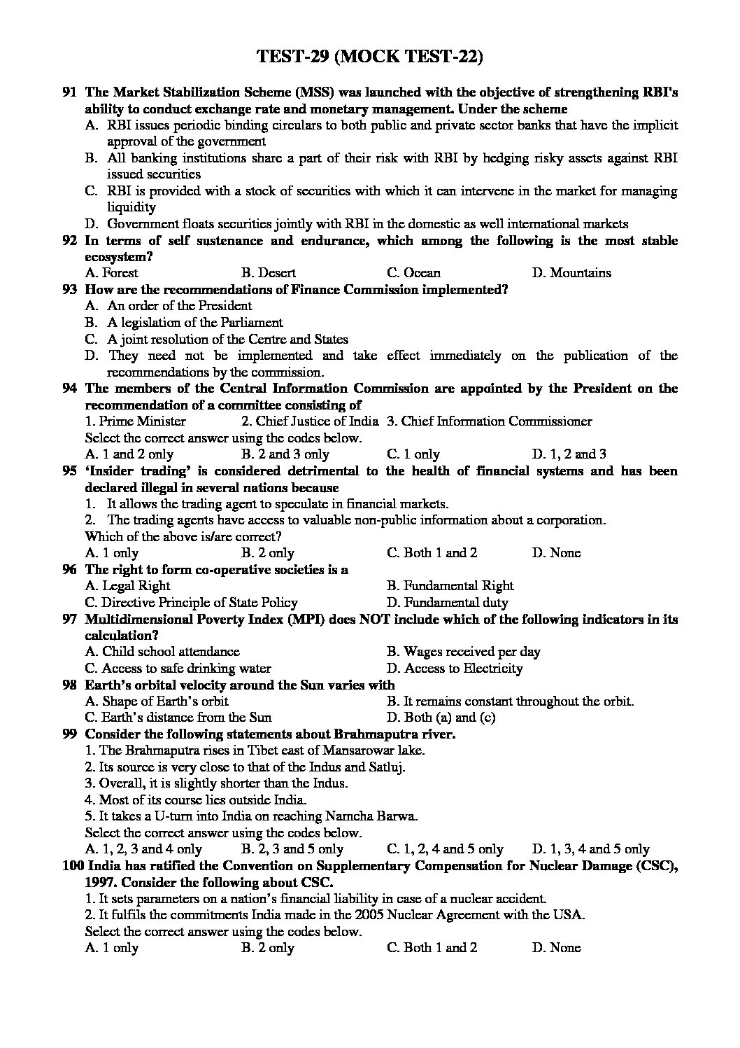 / INSIGHTS ONINDIA PT TEST WITH SOLUTION-29 ( ECONOMICS , POLITY AND CURRENT AFFAIRS) ( MOCK TEST-22) 2018
