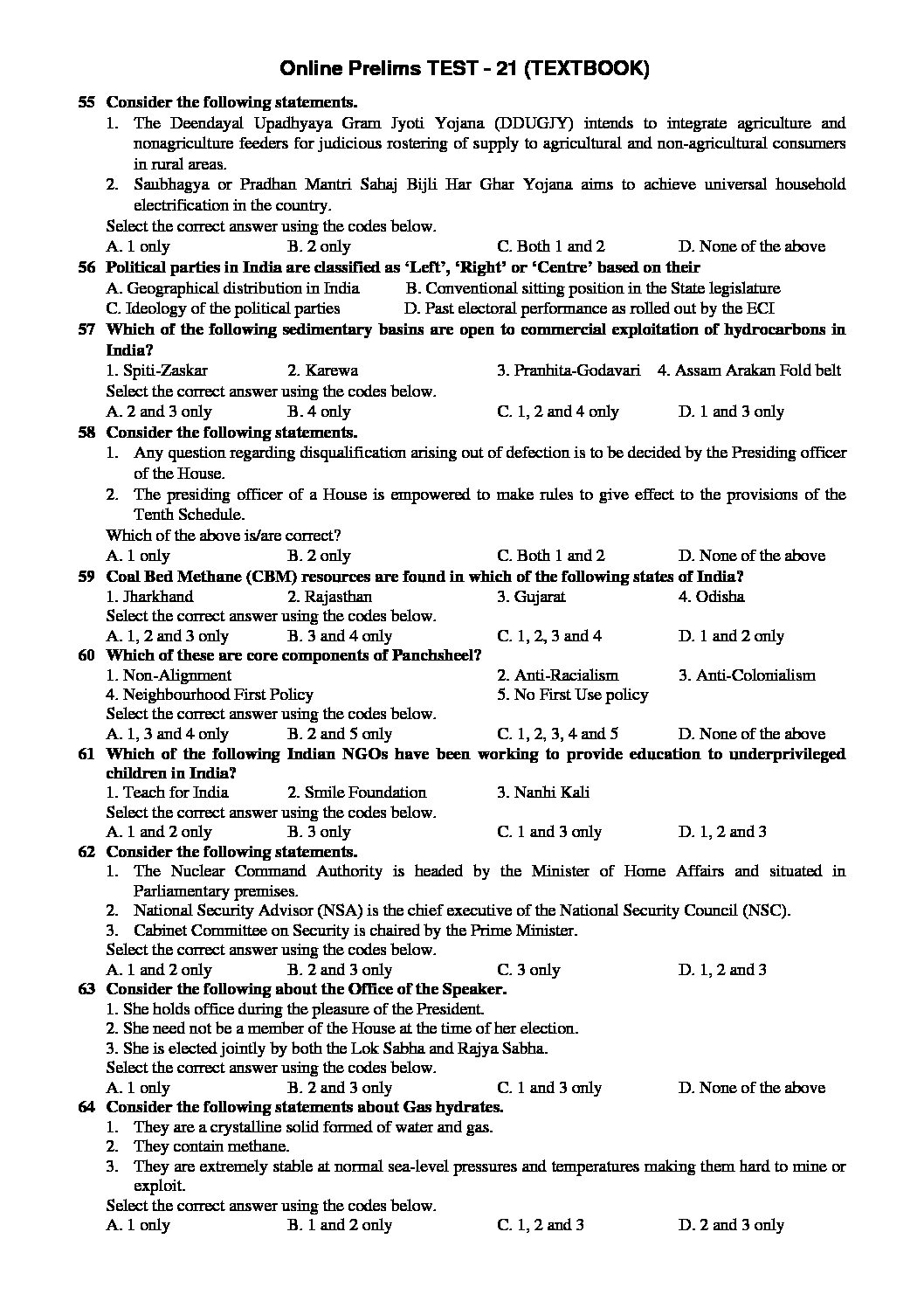 INSIGHTS PT TEST-21 ( POLITICAL, ECONOMY, GEOGRAPHY ENVIRONMENT & CURRENT AFFAIRS) (TEXTBOOK APPROACH 2020) (BLACK & WHITE)