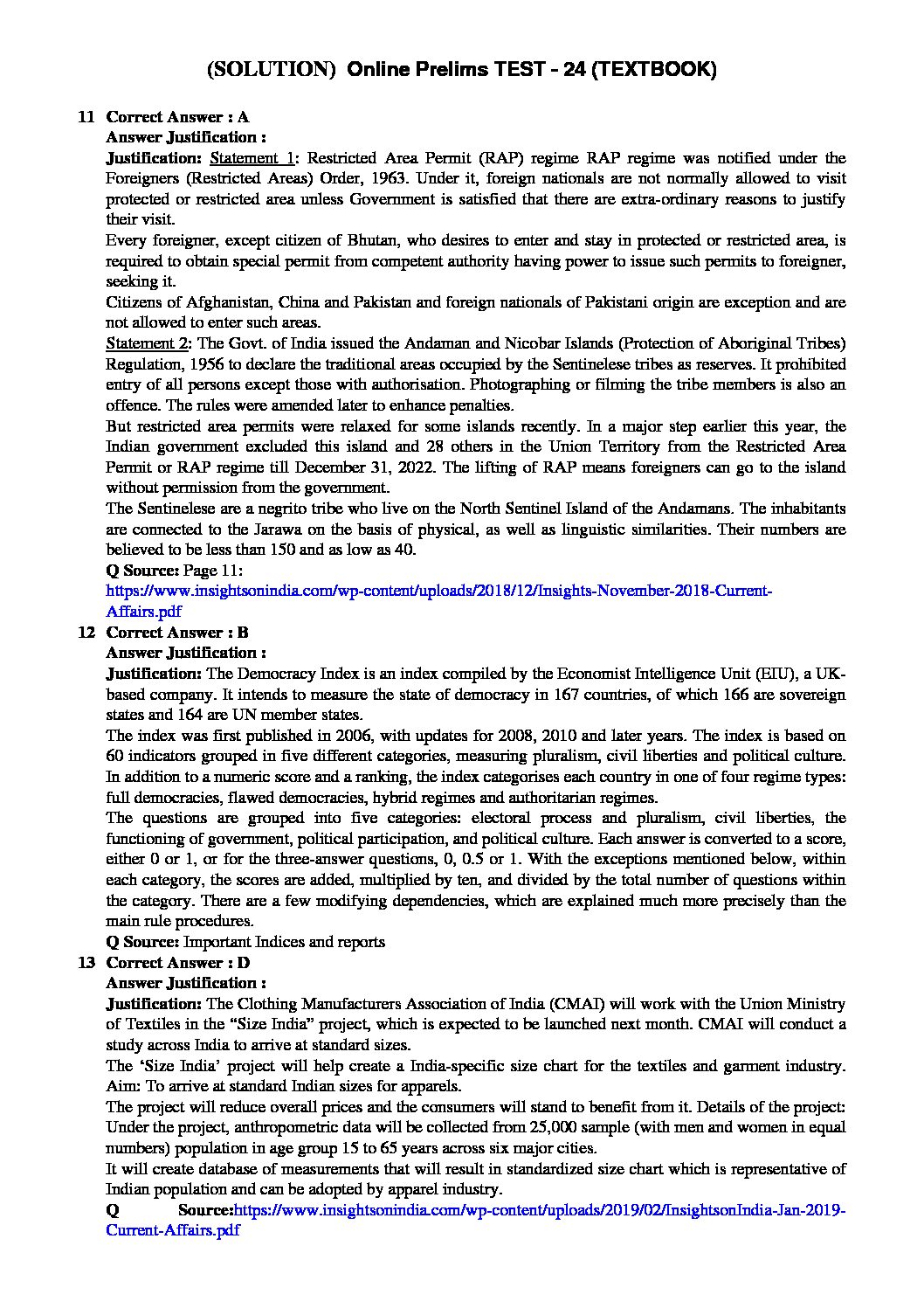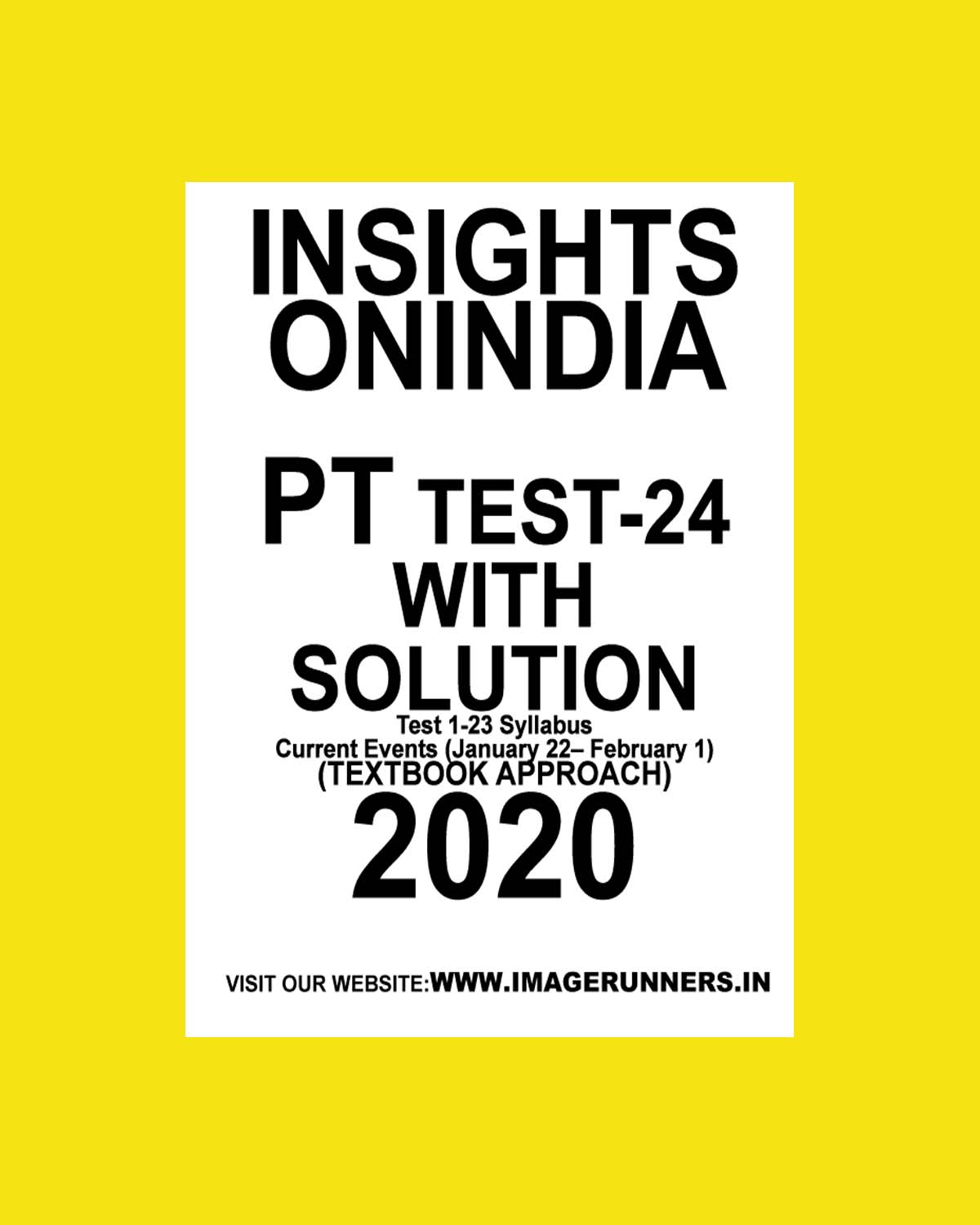 INSIGHTS PT TEST-24 ( TEST 1-23 SYLLABUS CURRENT EVENTS ( JANUARY 22- FEBRUARY 1) (TEXTBOOK APPROACH 2020) (BLACK & WHITE)