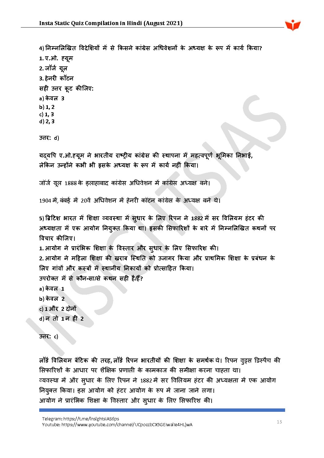 / INSIGHTSIAS INSIGHTS ONINDIA INSTA STATIC QUIZ COMPILATION IN HINDI AUGUST 2021 (HINDI MEDIUM) (BLACK & WHITE)