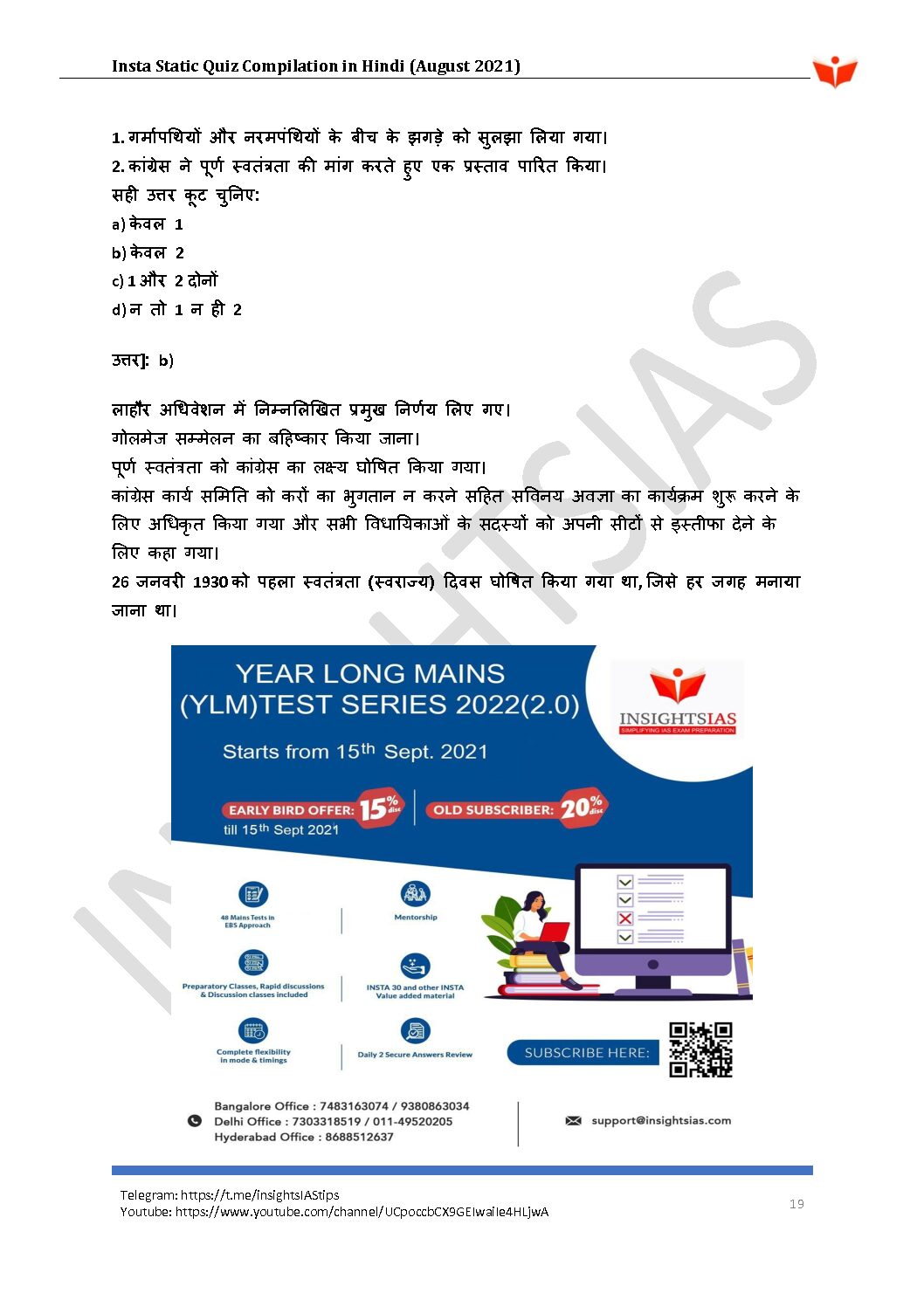 INSIGHTSIAS INSIGHTS ONINDIA INSTA STATIC QUIZ COMPILATION IN HINDI AUGUST 2021 (HINDI MEDIUM) (BLACK & WHITE) quantity