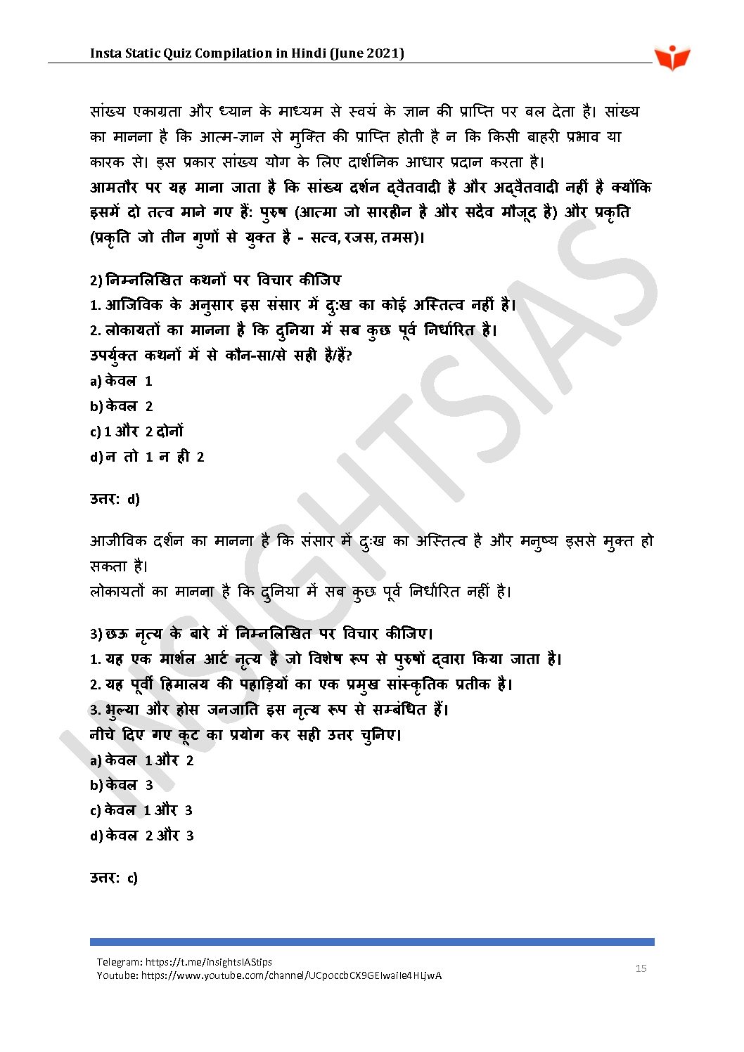 INSIGHTSIAS INSIGHTS ONINDIA INSTA STATIC QUIZ COMPILATION IN HINDI JUNE 2021 (HINDI MEDIUM) (BLACK & WHITE)