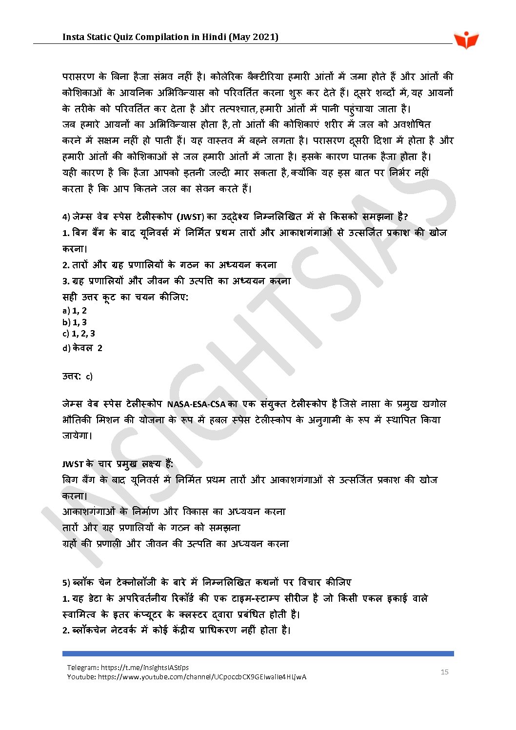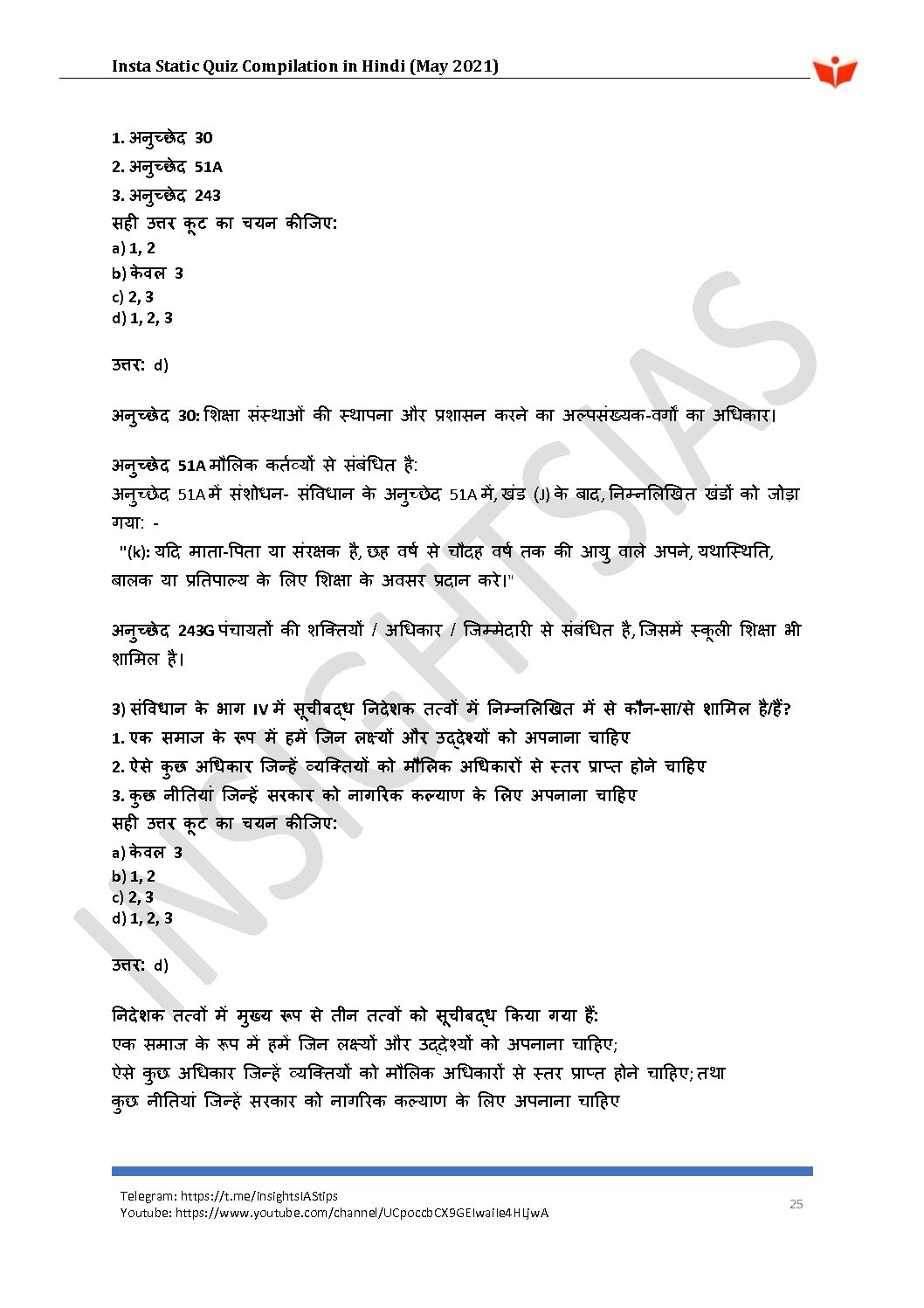 INSIGHTSIAS INSIGHTS ONINDIA INSTA STATIC QUIZ COMPILATION IN HINDI MAY 2021 (HINDI MEDIUM) (BLACK & WHITE)