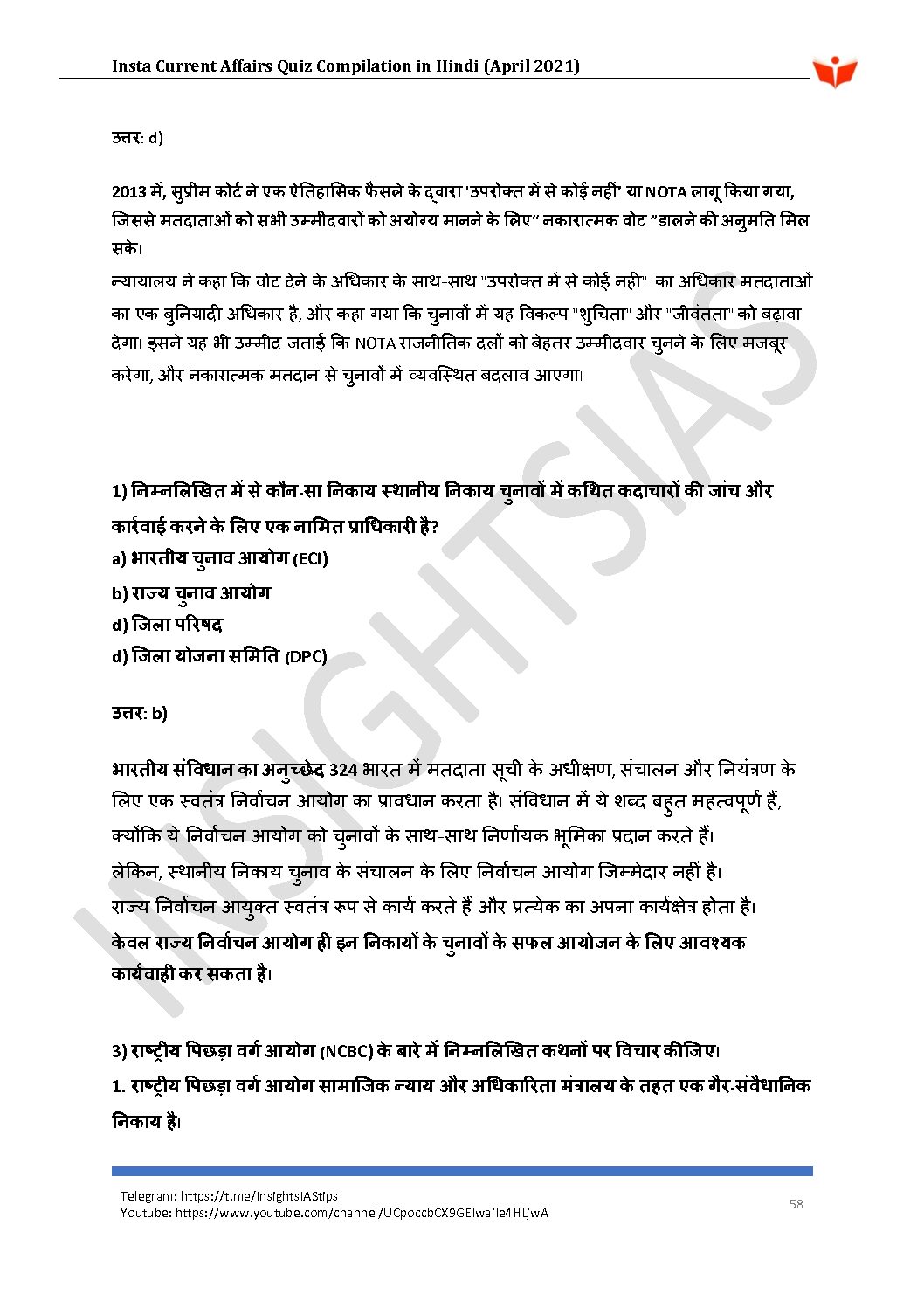 INSIGHTSIAS INSTA INSIGHTSONINDIA HINDI CURRENT AFFAIRS QUIZ APRIL 2021 (BLACK & WHITE)