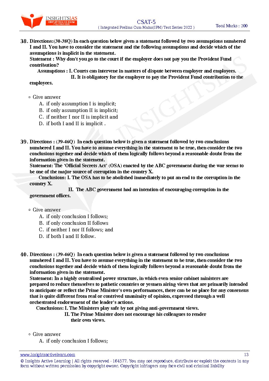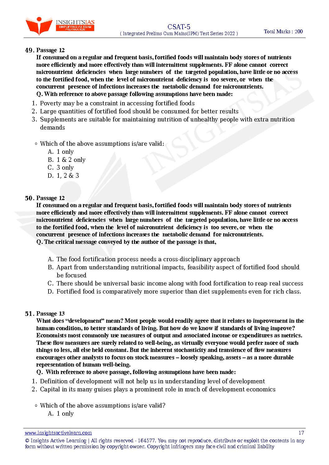 / INSIGHTS ONINDIA 2022 PT TEST-05 WITH SOLUTION (CSAT-5) (SUBJECTWISE APPORACH) 2022 (BLACK & WHITE)