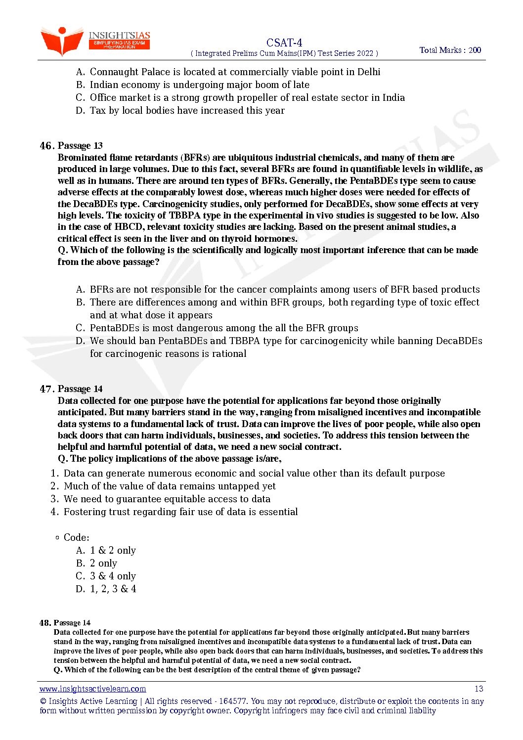 INSIGHTS ONINDIA 2022 TEST-04 WITH SOLUTION (CSAT-4) (SUBJECTWISE APPORACH) 2022 (BLACK & WHITE)