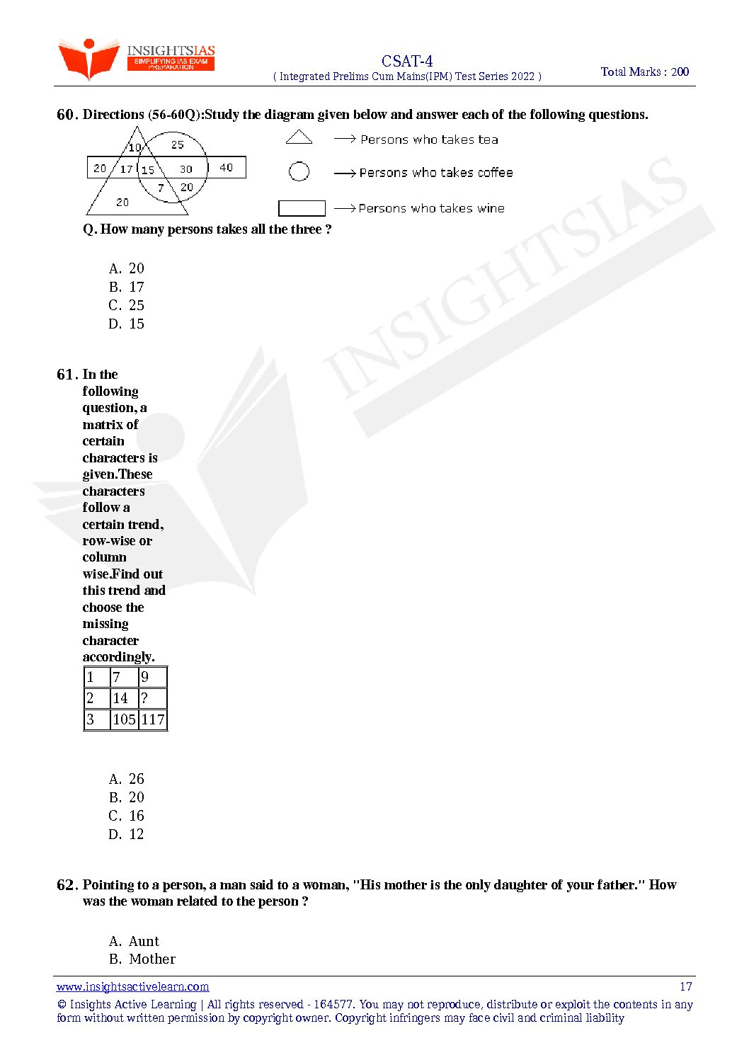 / INSIGHTS ONINDIA 2022 TEST-04 WITH SOLUTION (CSAT-4) (SUBJECTWISE APPORACH) 2022 (BLACK & WHITE)