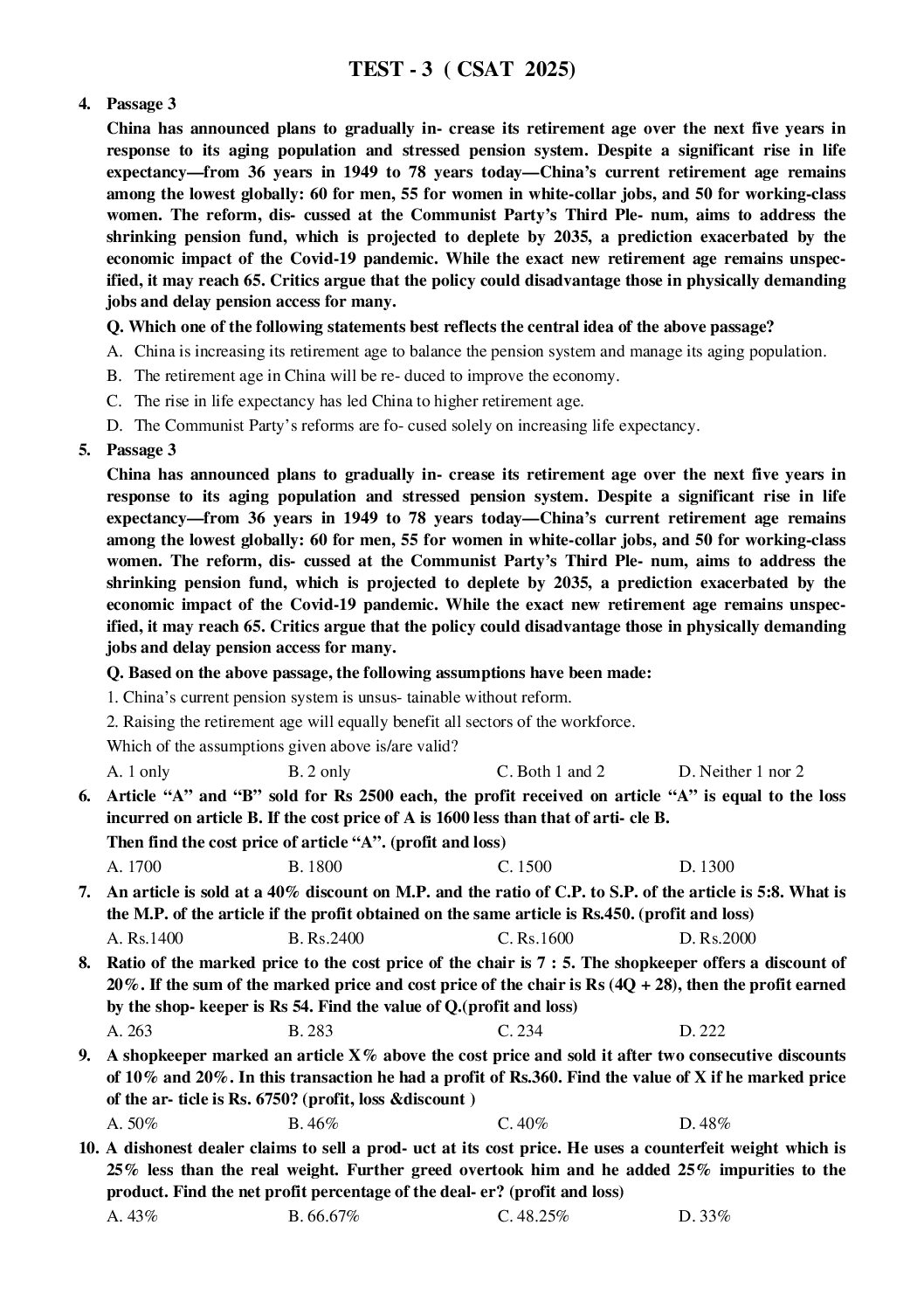 ALL INDIA OPEN CSAT MOCK TEST