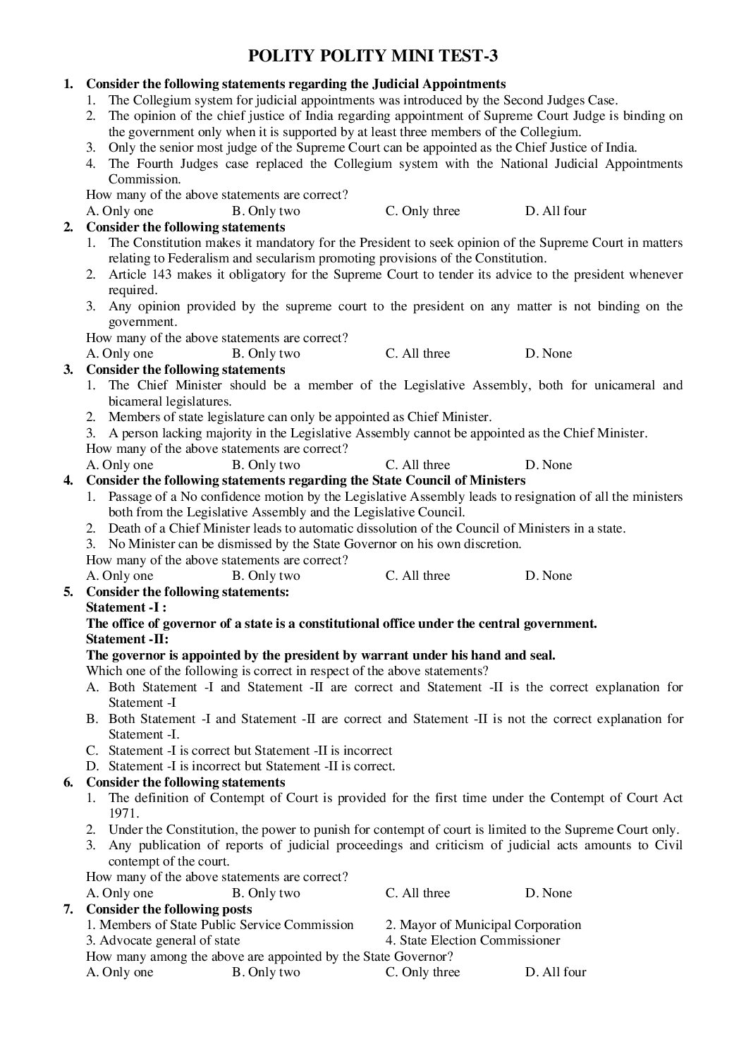 / INSIGHTSONINDIA 2025 PT TEST-03 (POLITY MINI TEST-03) FINAL {ENGLISH} {BLACK AND WHITE}