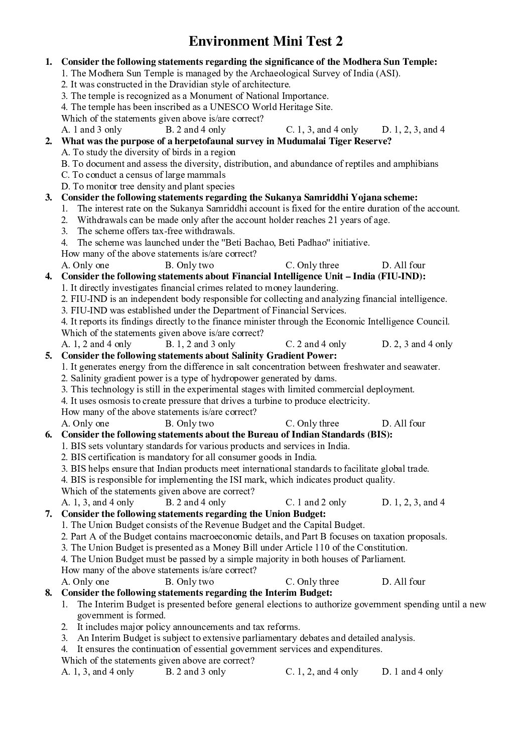 INSIGHTSONINDIA 2025 PT TEST-20 (ENVIRONMENT MINI TEST-02) FINAL (ENGLISH) {BLACK AND WHITE} quantity