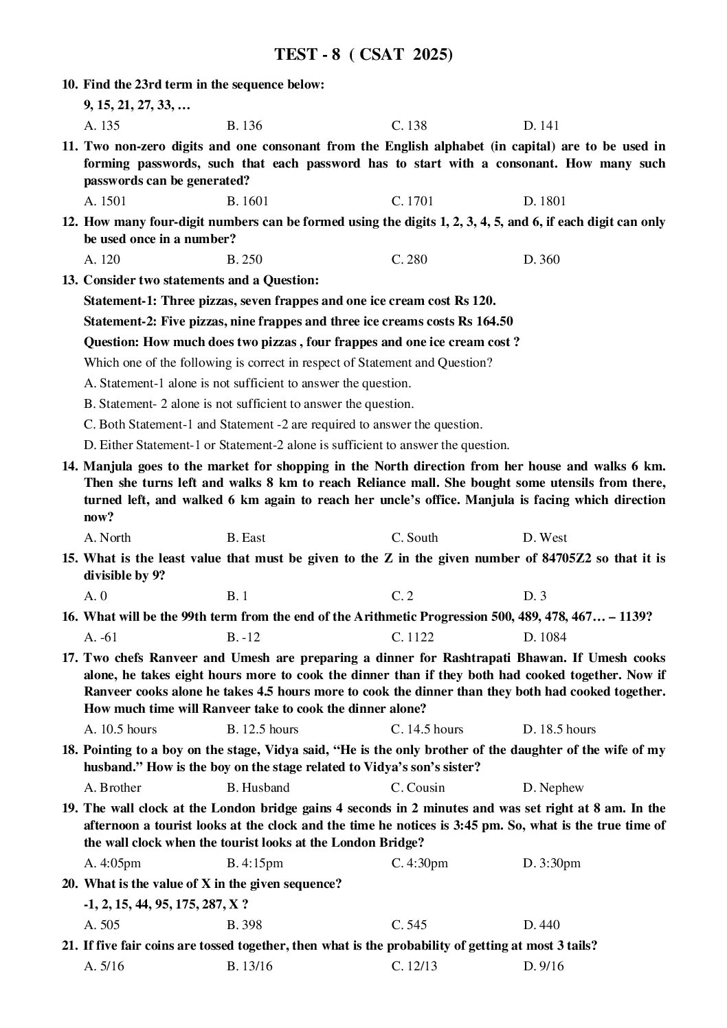 ALL INDIA MOCK CSAT ANUBHAV TEST