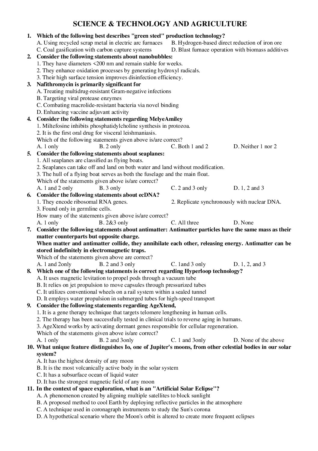 INSIGHTSONINDIA 2025 TEST-39 (SCIENCE & TECHNOLOGY AND AGRICULTURE) FINAL {BLACK AND WHITE}