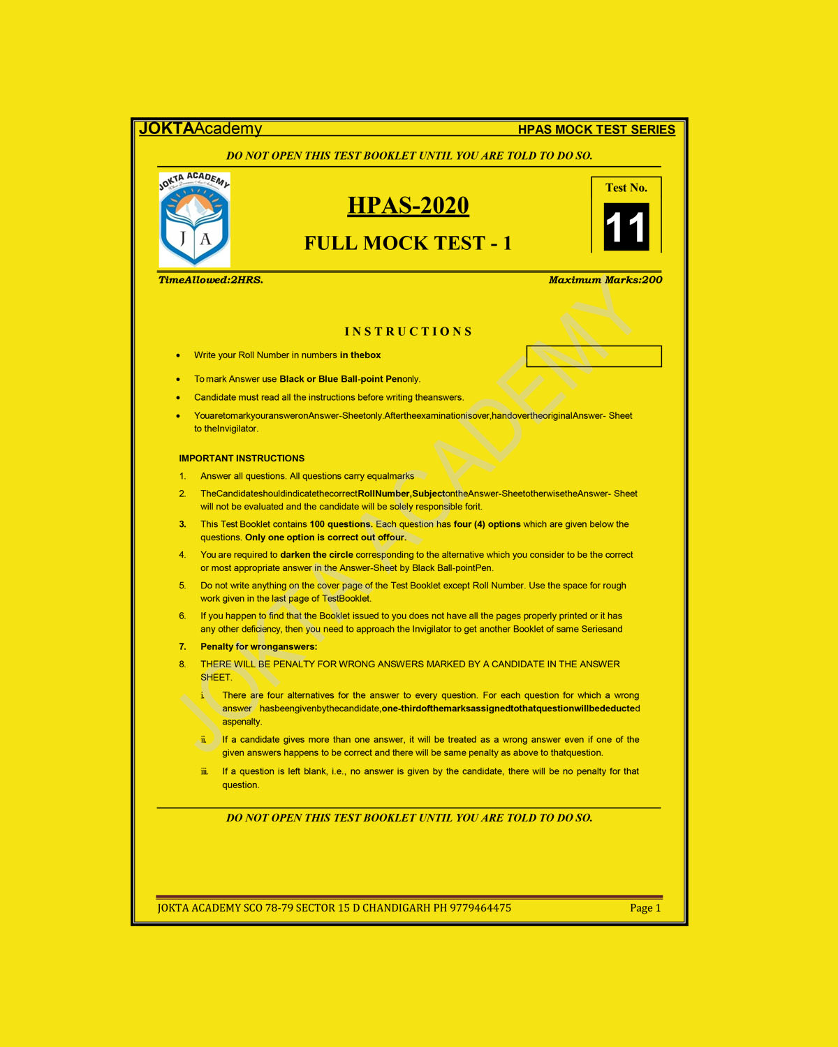 JOKTAIAS ACADEMY FULL MOCK TEST-1(2020) (BLACK & WHITE)