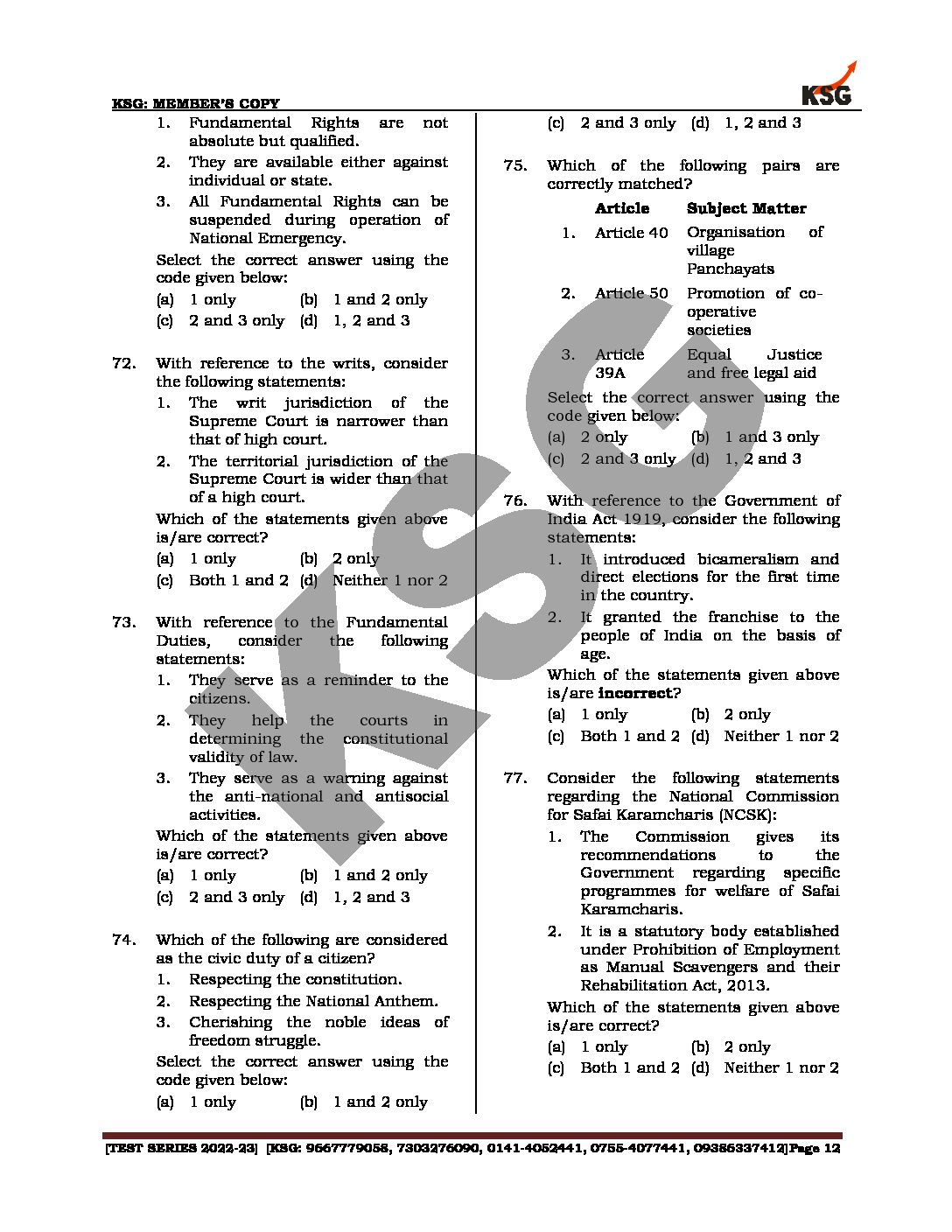 KSG IAS 2023 TEST-1 TO 5 (9001-9005 TEST CODE) (BLACK & WHITE)