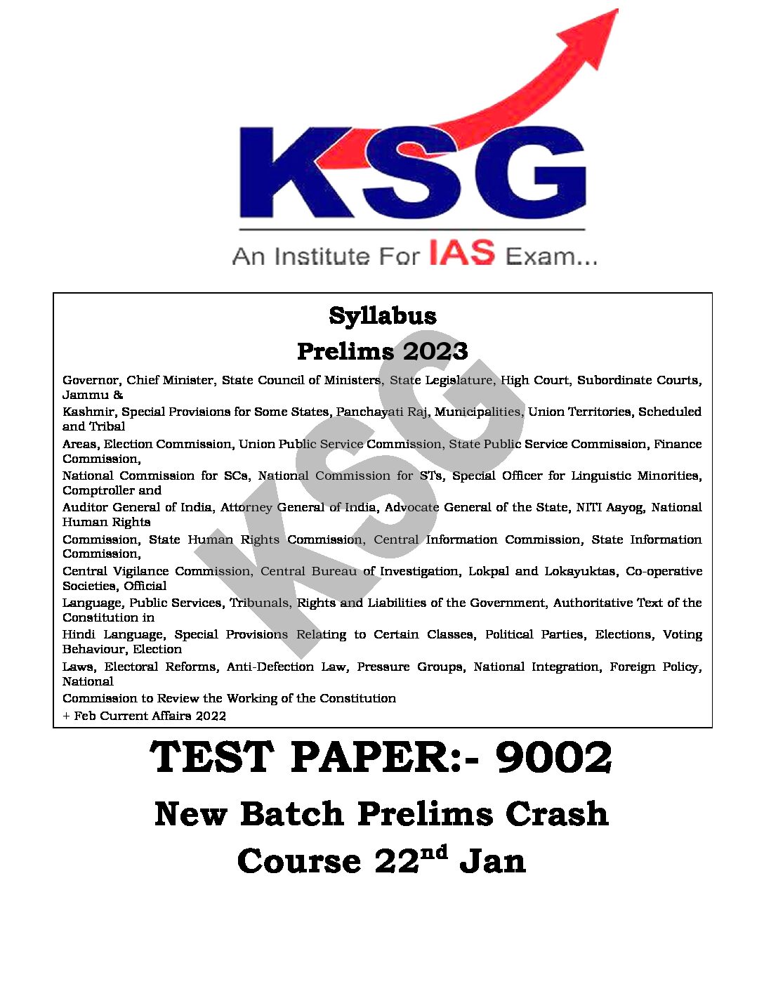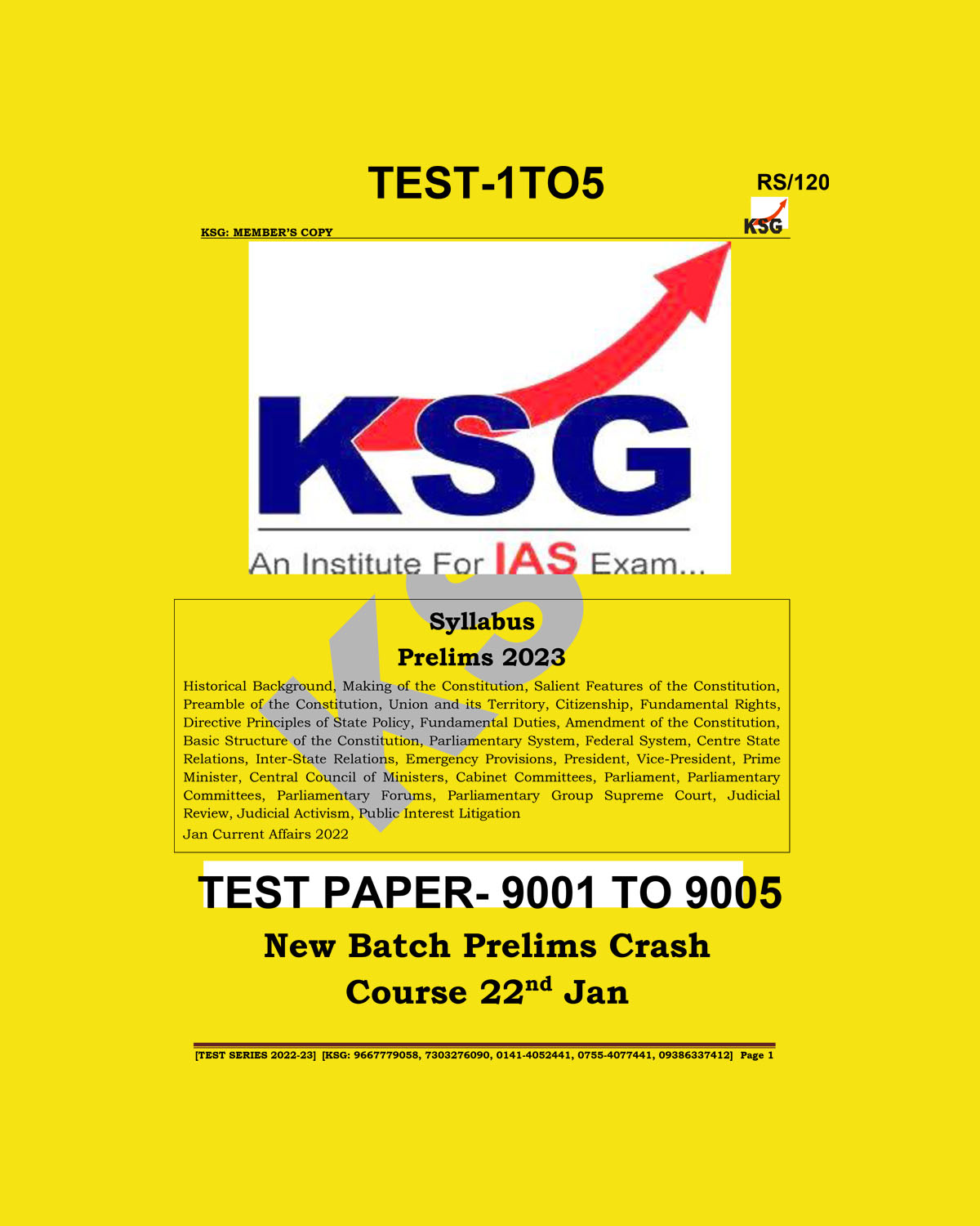 / KSG IAS 2023 TEST-1 TO 5 (9001-9005 TEST CODE) (BLACK & WHITE)