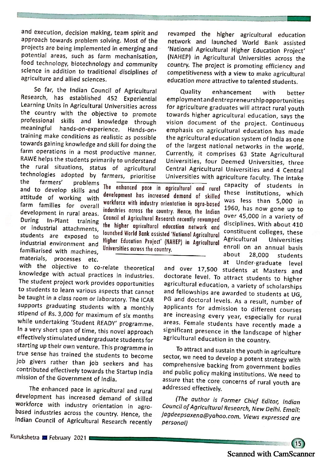 KURUKSHETRA (EMPOWERING RURAL YOUTH) FEBRUARY 2021 (XEROX) (BLACK & WHITE)