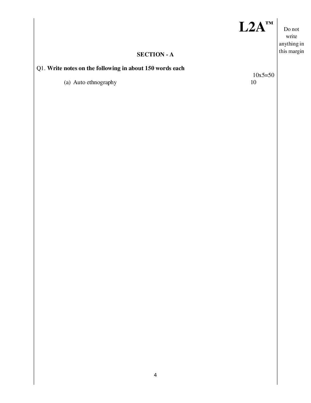 L2A QUESTIONS CUM ANSWER BOOKLETS 2026 TEST-14 QCA BOOKLET 2026 ANTHROPOLOGY FINAL (ENGLISH) {BLACK AND WHITE} quantity
