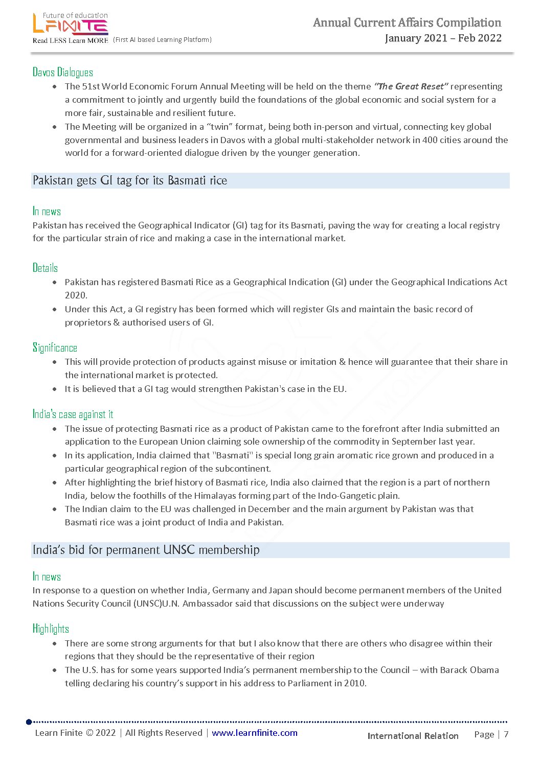 LEARN FINITE CURRENT AFFAIRS YEARLY COMPILATION JAN 2021 TO FEB 2022 INTERNATIONAL RELATIONS (COVERING 400+ DAYS ) (BLACK & WHITE)