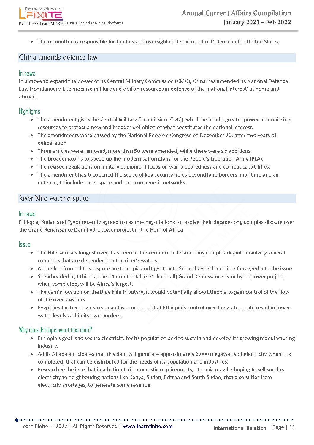 / LEARN FINITE CURRENT AFFAIRS YEARLY COMPILATION JAN 2021 TO FEB 2022 INTERNATIONAL RELATIONS (COVERING 400+ DAYS ) (BLACK & WHITE)