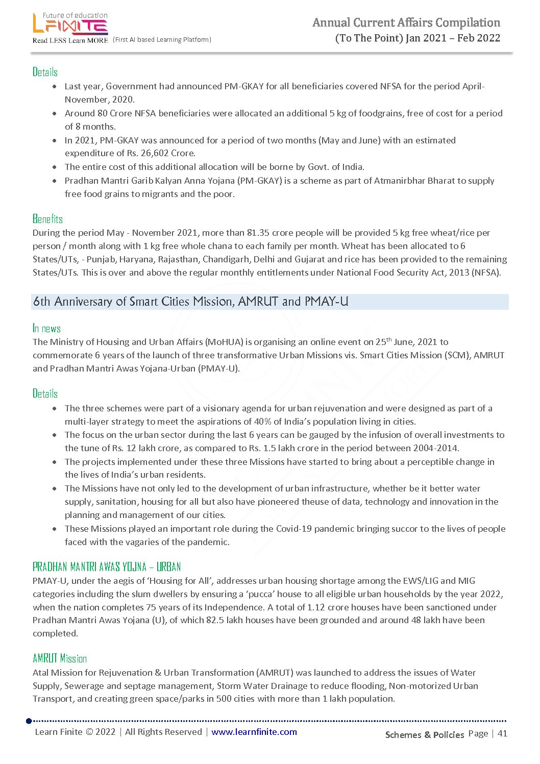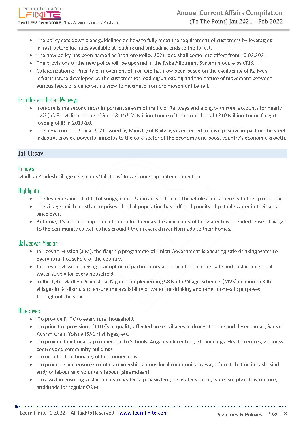 LEARN FINITE CURRENT AFFAIRS YEARLY COMPILATION JAN 2021 TO FEB 2022 SCHEMES & POLICIES (COVERING 400+ DAYS ) (BLACK & WHITE)