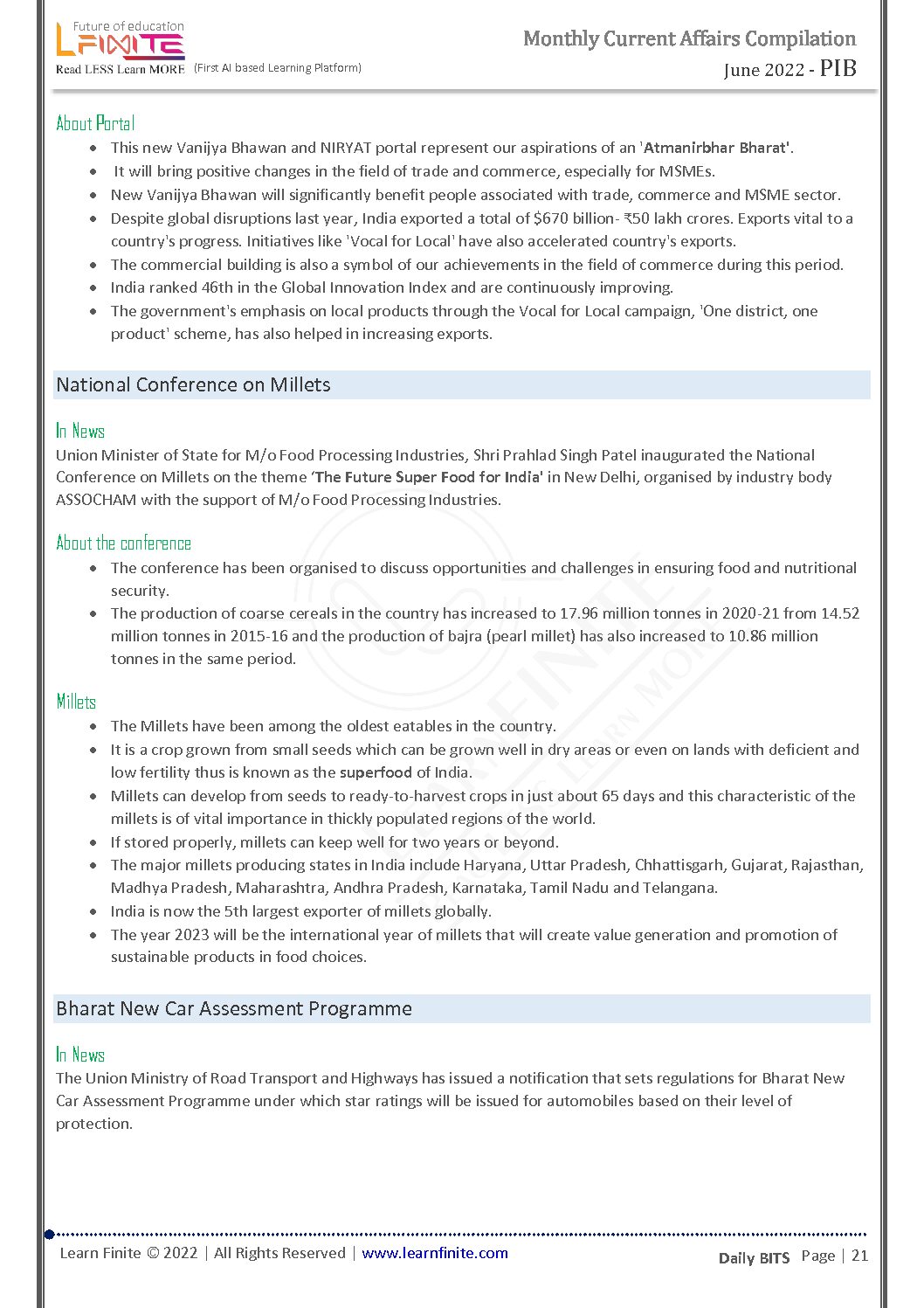 / LEARN FINITE PIB COMPILATION (JUNE -2022) PRELIMS 2023 (BLACK & WHITE)