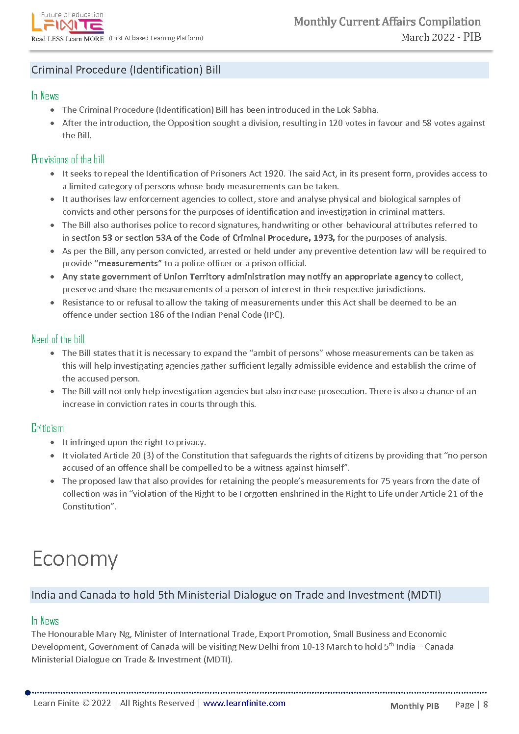 LEARN -FINITE PIB COMPILATION PRELIMS 2022 (MARCH-2022) (BLACK & WHITE)