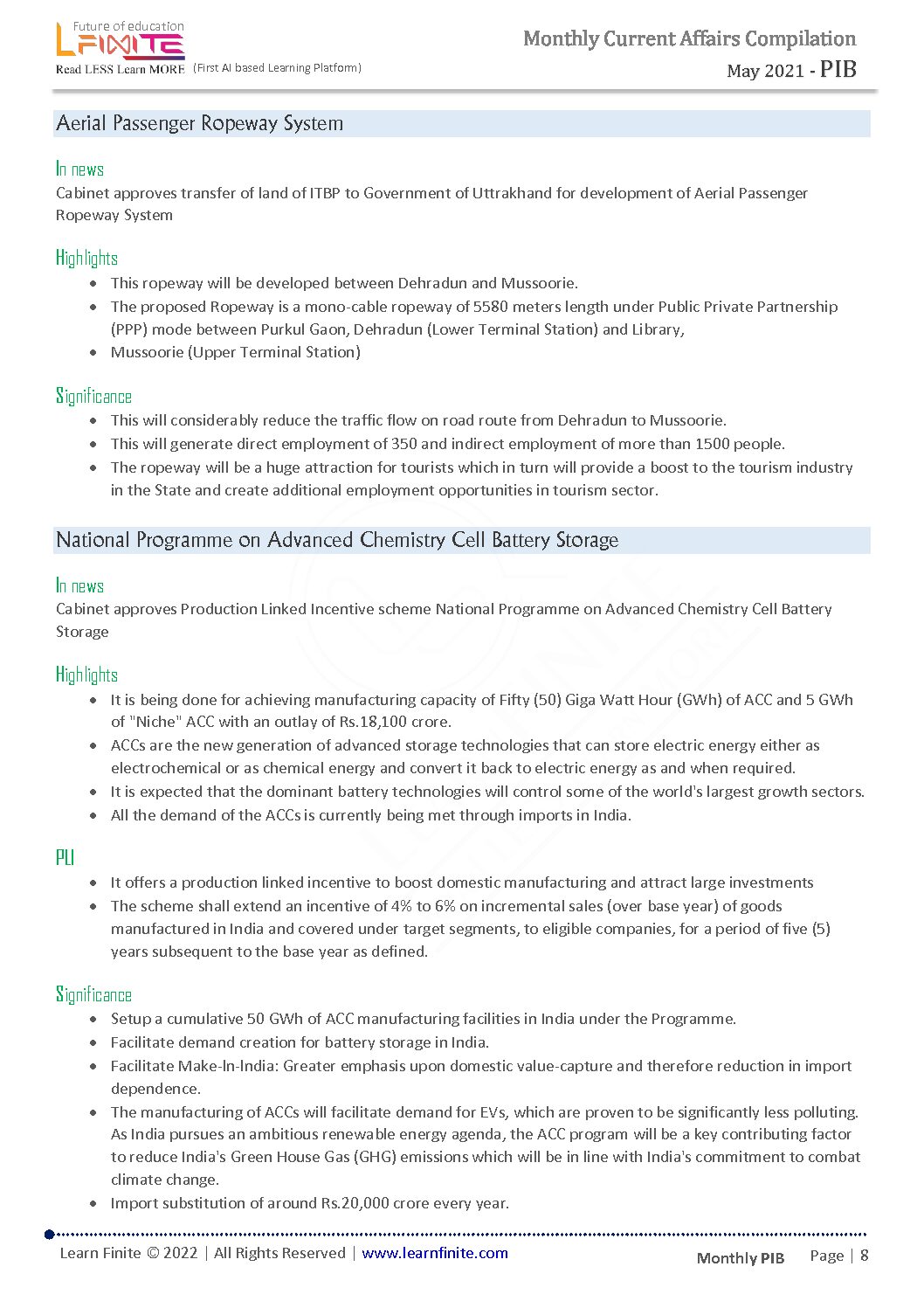 LEARN FINITE PIB COMPILATION PRELIMS 2022 (MAY 2021 TO AUGUST) (BLACK & WHITE)