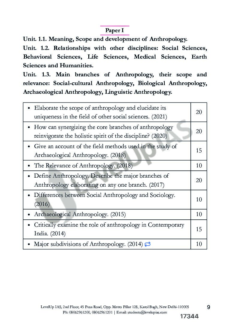 LEVELUP IAS ANTHROPOLOGY PYQ QUESTION 2014 TO 2024 FINAL (ENGLISH) {BLACK AND WHITE} quantity