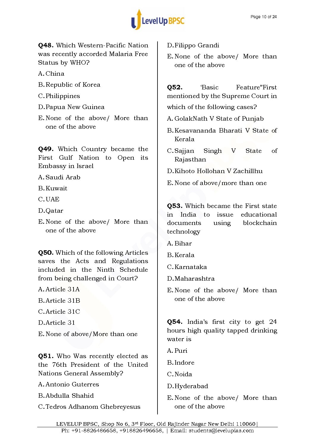 / LEVELUP IAS BPSC 67TH PRELIMS CHALLENGER TEST SERIES TEST-1 TO 4 (BLACK & WHITE) GROUPED